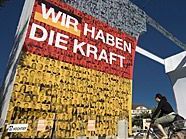 Auf einer Gesamtfläche von rund 1.660 Quadratmetern werben 1.800 Bürgerinnen und Bürger mit ihrem Gesicht für einen Wahlsieg der Union und eine weitere Amtszeit der deutschen Bundeskanzlerin Angela Merkel. Sie nehmen Anleihe bei “Star Wars” und werben mit dem Slogan “Wir haben die Kraft”. Das Plakat überspannt in 28 Metern Höhe die achtspurige Bundesstraße. Die Partei hatte im Internet ihre Unterstützer aufgerufen, Porträtbilder einzusenden und Teil dieses Wahlplakats zu werden. Innerhalb weniger Tage wurden Tausende Bilder eingeschickt. Am 27. September wird in Deutschland ein neues Parlament gewählt.