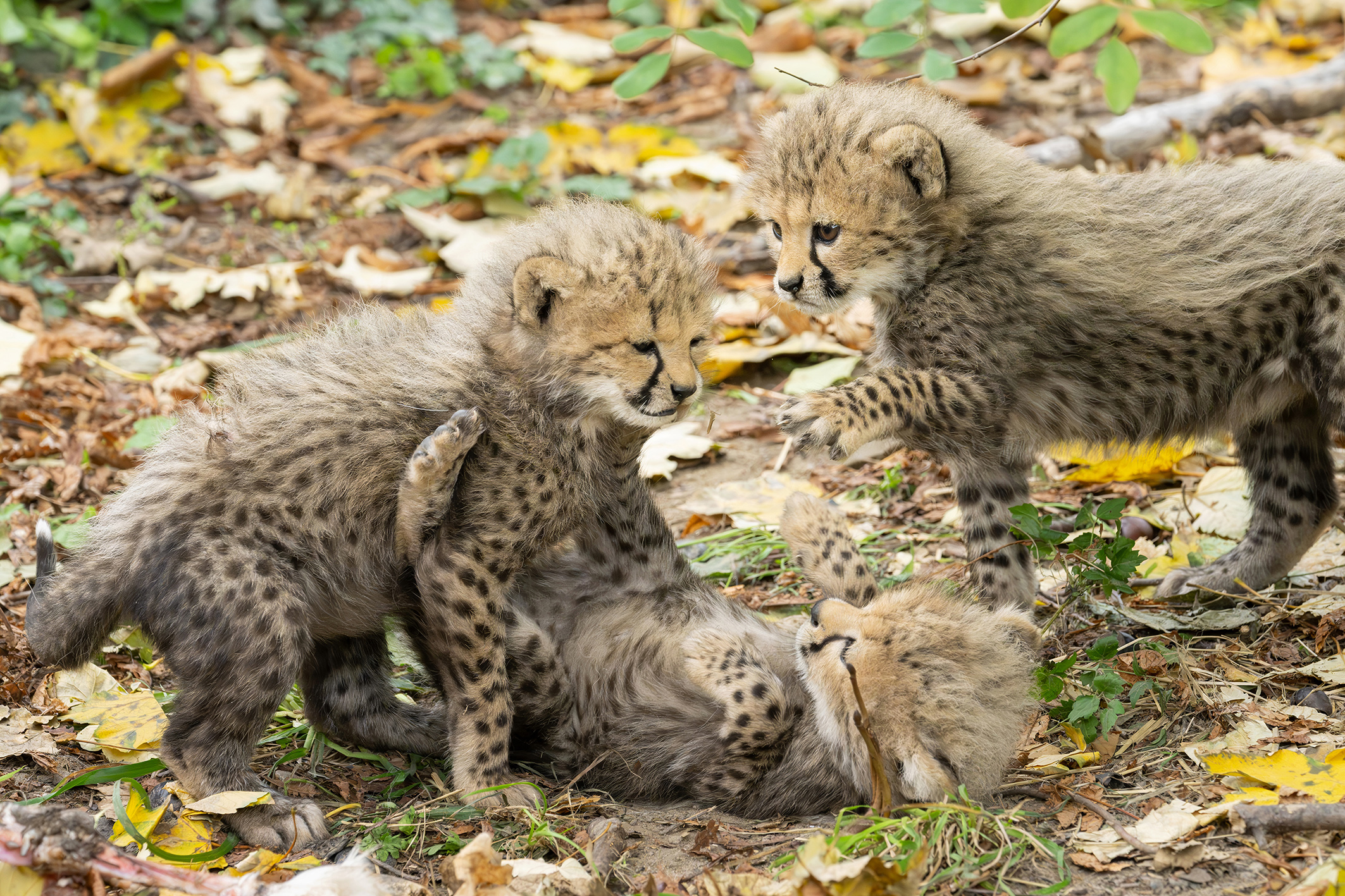 "In the first three and a half weeks, the cubs were raised in the den. Only after that did the mother lead them outside for the first time," reports area manager Andreas Eder. The young are currently still nursing, but soon the mother will provide them with meat and get them used to solid food. In the wild, cheetah cubs are highly endangered by predators, and only a few reach adulthood. Even in the zoo, the mother remains constantly vigilant, says Eder. "If you listen closely, you can hear many sounds. The female calls her young when they stray too far, and the little ones call out when they feel briefly unsure." Exhausted from their explorations, the cubs snuggle up to the mother and are lovingly licked.