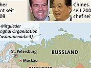“Die internationale Gemeinschaft kann durchaus konstruktive Hilfe leisten, damit sich die Situation nicht verschlechtert, aber kein Land darf sich in die inneren Angelegenheiten eines Landes in der Region einmischen”, erklärten die Präsidenten beider Länder, Dmitri Medwedew und Hu Jintao am Donnerstag. Moskau und Peking riefen daher zu einer “Lösung der Konflikte mit friedlichen Mitteln auf”, hieß es in der von beiden Staatschefs unterzeichneten Erklärung.