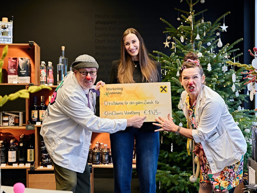 Wer schon einmal während eines Krankenhausaufenthaltes die CliniClowns in Aktion erlebt hat, weiß, wie wertvoll eine Aufheiterung in schwierigen Situationen ist. CliniClowns sind keine gewöhnlichen Spaßmacher:innen, sondern sorgfältig ausgewählte und speziell geschulte Lachtherapeut:innen. Unter dem Motto „Lachen ist die beste Medizin“ visitieren sie „ihre“ Patient:innen – egal ob Kinder, Erwachsene oder Senioren und zaubern so manches Lächeln. Der Erlös aus der Christbaumaktion wird von Lustenau Marketing durch den Honorarverzicht von Miro Kuzmanovic für das Pressefoto auf 1525 Euro erhöht und ist an dieser Stelle bestens aufgehoben.