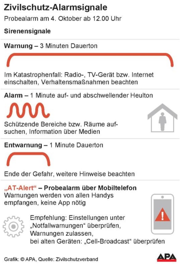 On Saturday, October 4, 2025, the annual civil protection test alarm will be conducted across Austria between 12:00 and 12:45 PM. After a siren test, the three official civil protection signals "Warning," "Alarm," and "All-clear" will be broadcast. The goal is both the technical verification of the warning system and informing the public about the significance of the signals.