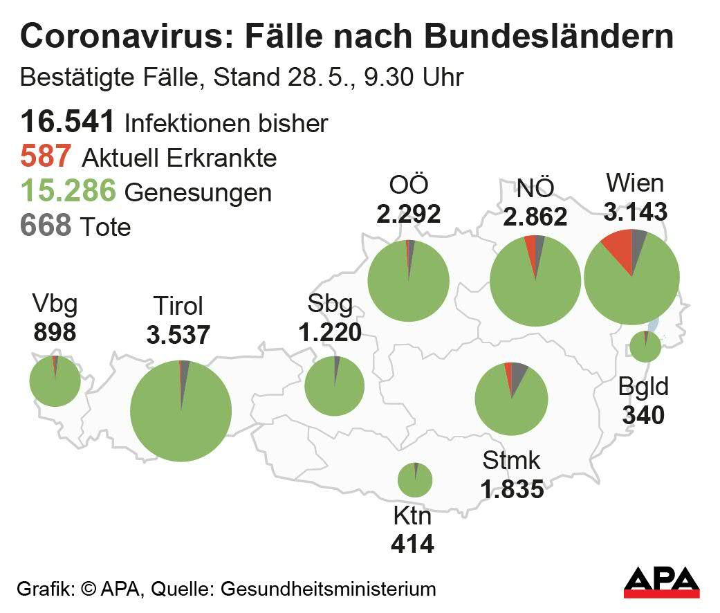 2.607 Personen haben sich inzwischen von Covid-19 erholt. Was die Coronavirus-Situation in Schulen und Kindergärten anbelangt, so sagte ein Sprecher des Krisenstabes der APA: "Es gibt fünf neue Fälle". Drei Erkrankungen gab es in Schulen, zwei in Kindergärten. Aktuell sind damit an sechs Kindergärten und an fünf Schuleinrichtungen Coronavirus-Fälle dokumentiert. Nähere Informationen zu den einzelnen Standorten werden vom Krisenstab nicht bekannt gegeben.