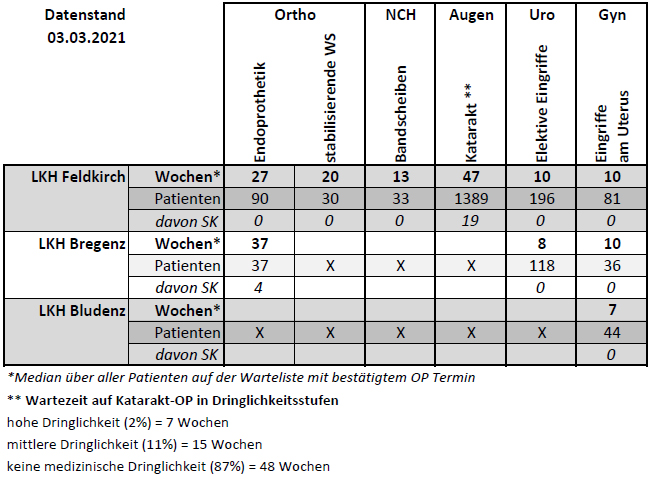 Während des weltweiten pandemischen Geschehens und mehrerer Lockdowns wurde die Veröffentlichung der OP-Wartezeiten vorübergehend ausgesetzt. Die Vorgehensweise war der notwendigen, sehr dynamischen Anpassung der OP-Kapazitäten an die jeweilige Belastung des Gesundheitssystems je nach Infektionslage geschuldet. Ab sofort informiert ein neues und erweitertes Monitoring, berichtet Landesrätin Rüscher. Die Aufstellung wird monatlich aktualisiert und lässt sich im Internet unter https://www.landeskrankenhaus.at/gesundheitsunternehmen/zahlen-und-fakten/wartelisten#gallery1 abrufen.