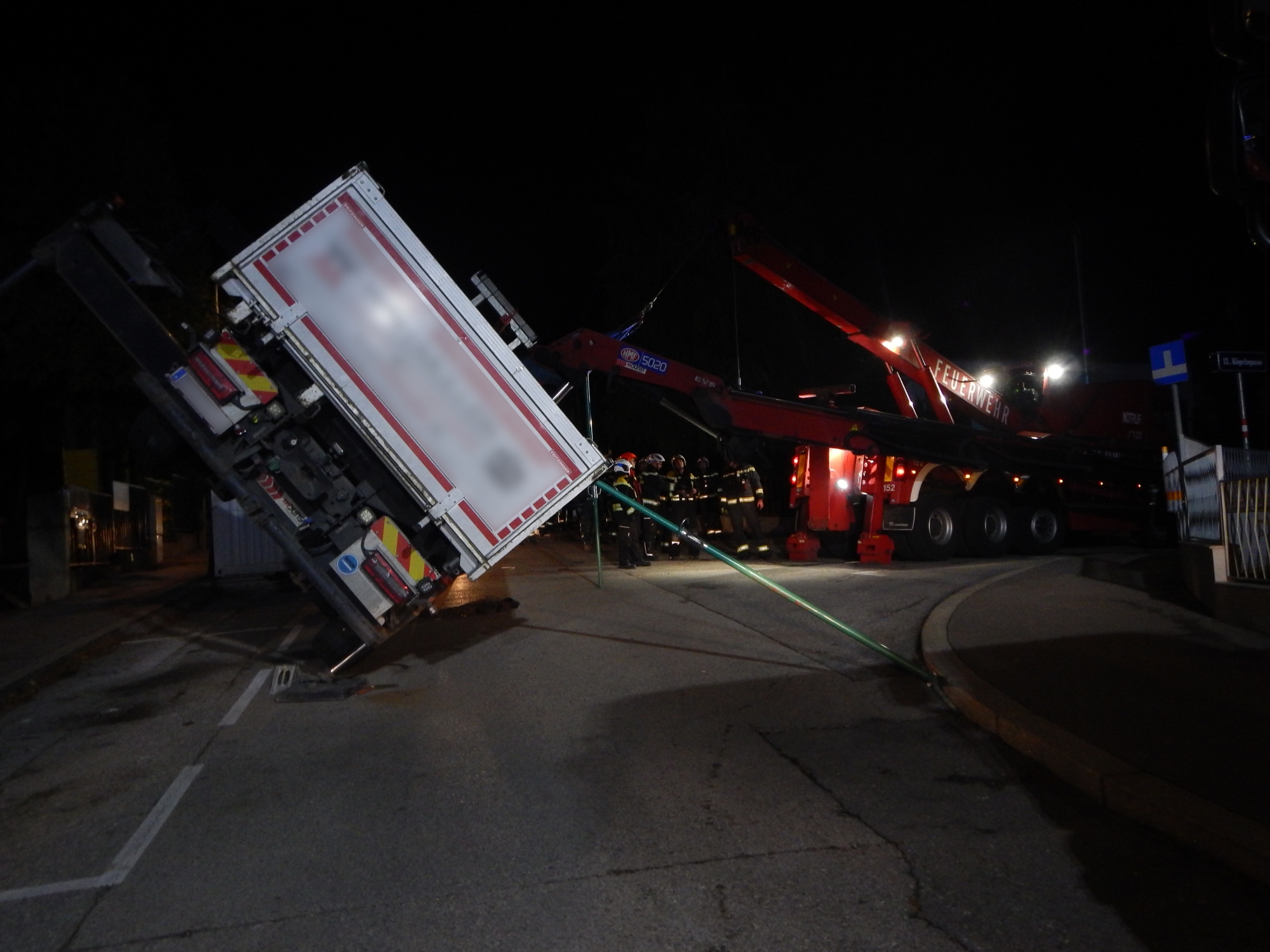 During the overturn, a public lighting line was also damaged. This was repaired by the responsible specialist department. During the complex operation, the affected section of the road was closed. The exact cause of the accident is still unclear and is the subject of police investigations.