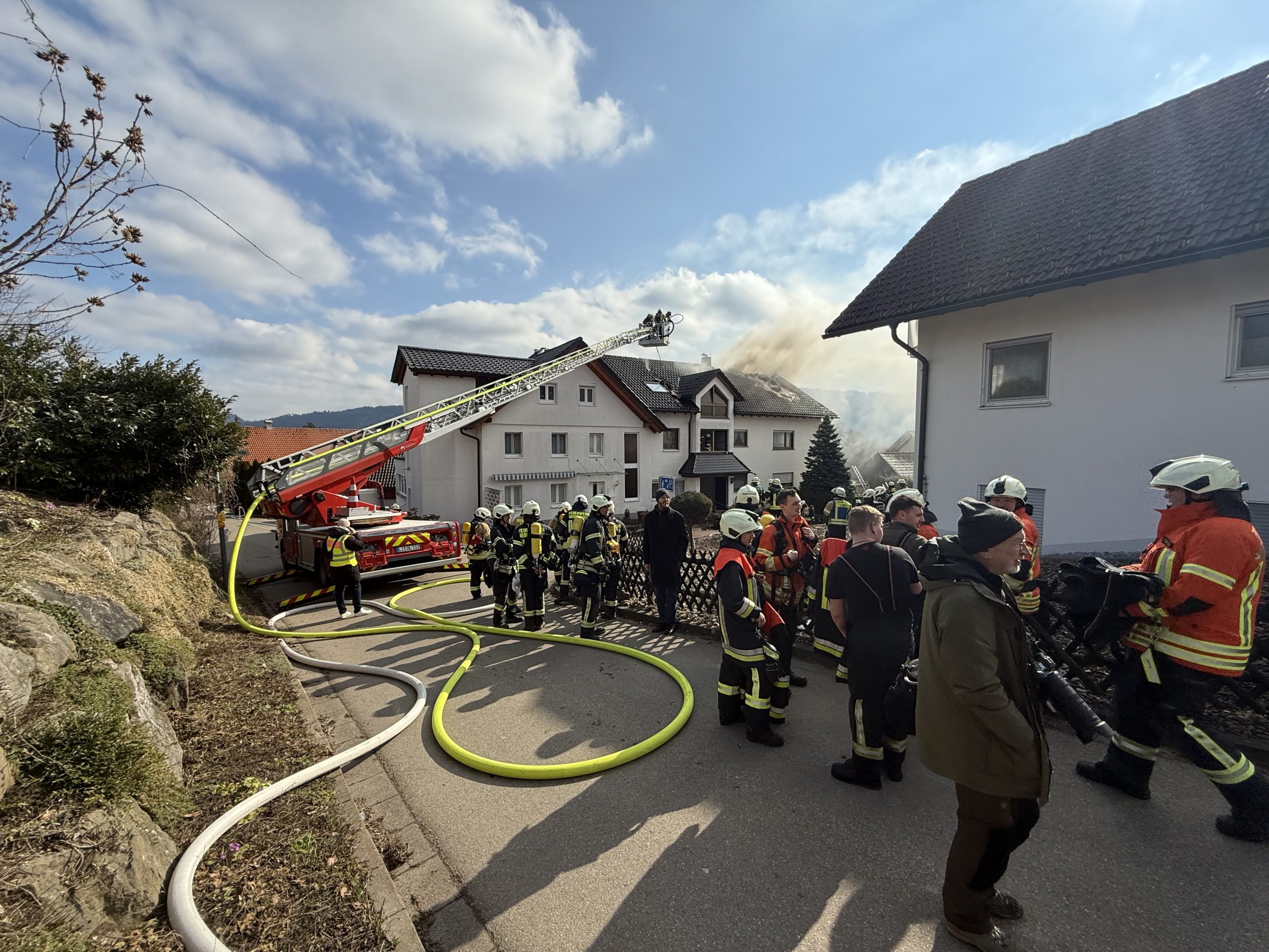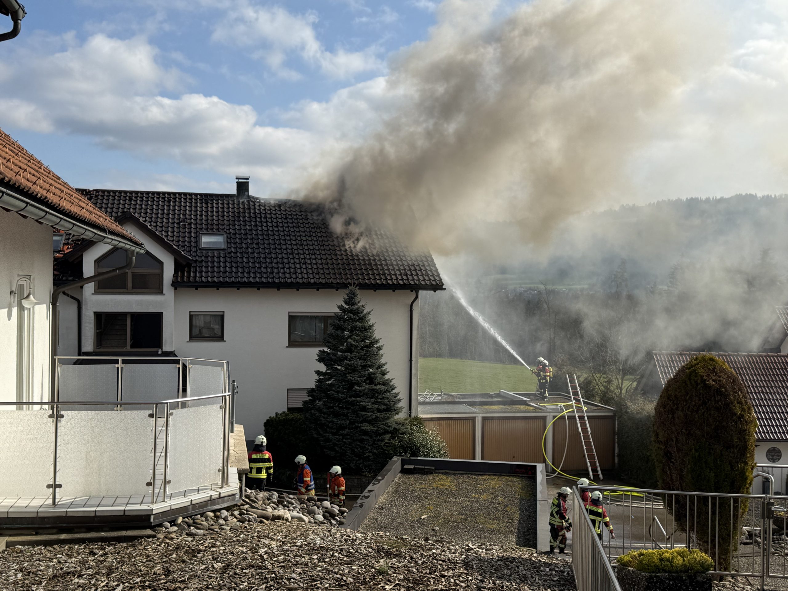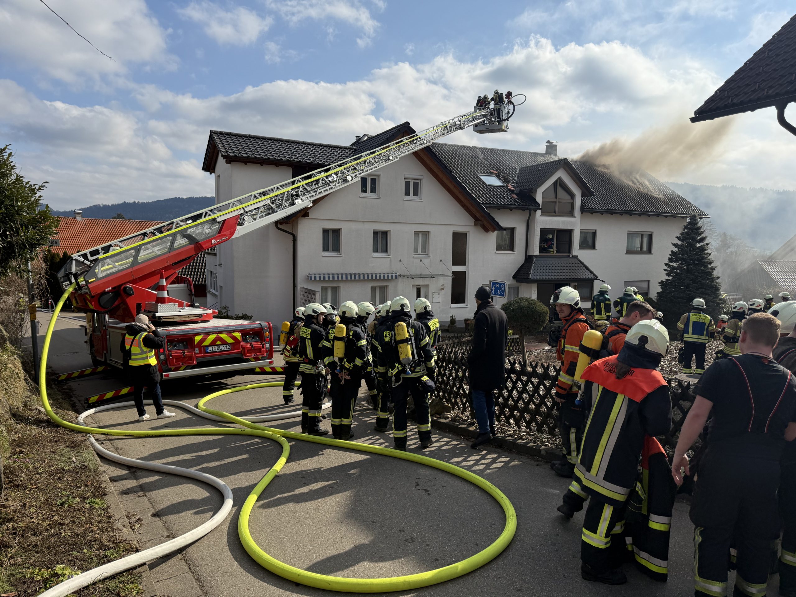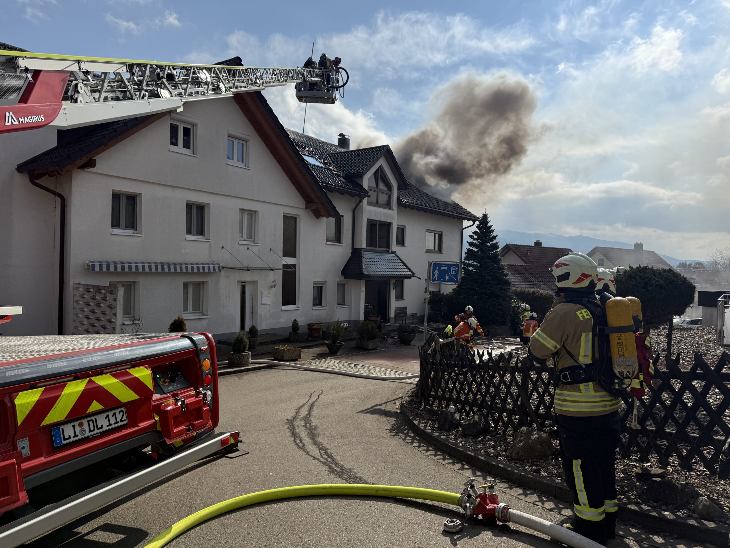 Dachstuhlbrand in Mehrfamilienhaus in Sigmarszell – Über 100 Einsatzkräfte im Einsatz