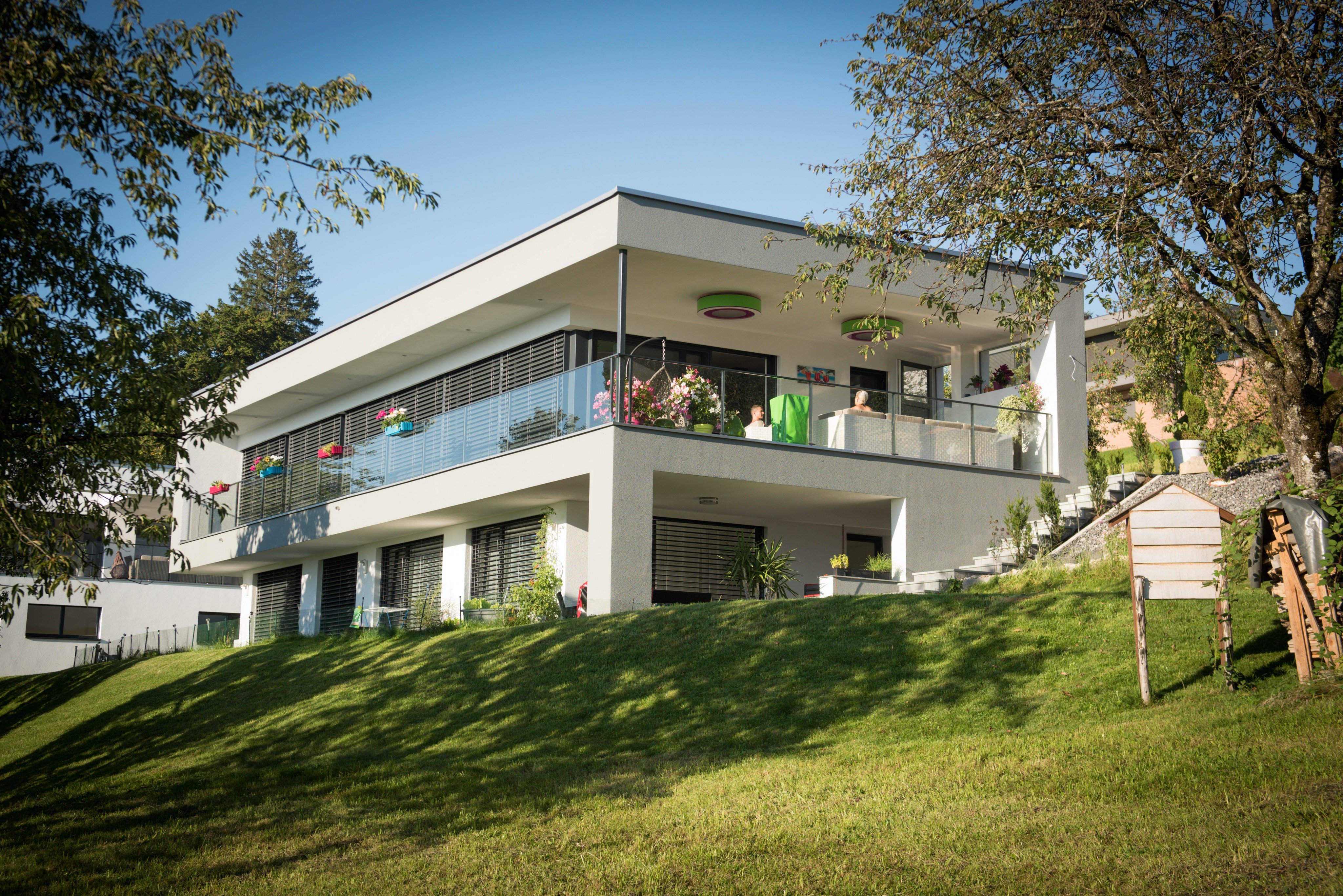 „Wir wollten von jedem Raum aus diese großartige Aussicht genießen können“, beschreibt Christian Frick die Grundbedingung für ihren Hausbau. Vor drei Jahren haben Manuela und er begonnen, sich mit dem Thema auseinanderzusetzen. Eilig hatten sie es eigentlich nicht, es war Christians Bruder Martin, der den Stein ins Rollen gebracht hat. „Der Baugrund befand sich im Familienbesitz, das erleichterte uns die Entscheidung natürlich ungemein.“ Ein Architekt entwarf für beide zwei nach Westen ausgerichtete Häuser mit ähnlichem Grundriss, Seite an Seite. „Mit meinem Bruder gleichzeitig zu bauen hat uns eigentlich nur Vorteile gebracht: Als Finanzgenie hatte er in Sachen Finanzierung, Angebotsvergleiche und Abwicklung den Durchblick. Wir konnten unser handwerkliches Geschick und unsere Berufe gut einbringen.“ Als es um die Finanzierung ging, fand man – nach dem Einholen vieler Angebote – mit der Sparkasse Feldkirch den perfekten Partner. Christoph Gassner, Leiter der Filiale Sulz Röthis, konnte mit einer maßgeschneiderten und auf die Bedürfnisse der Familie abgestimmten Finanzierungslösung überzeugen.