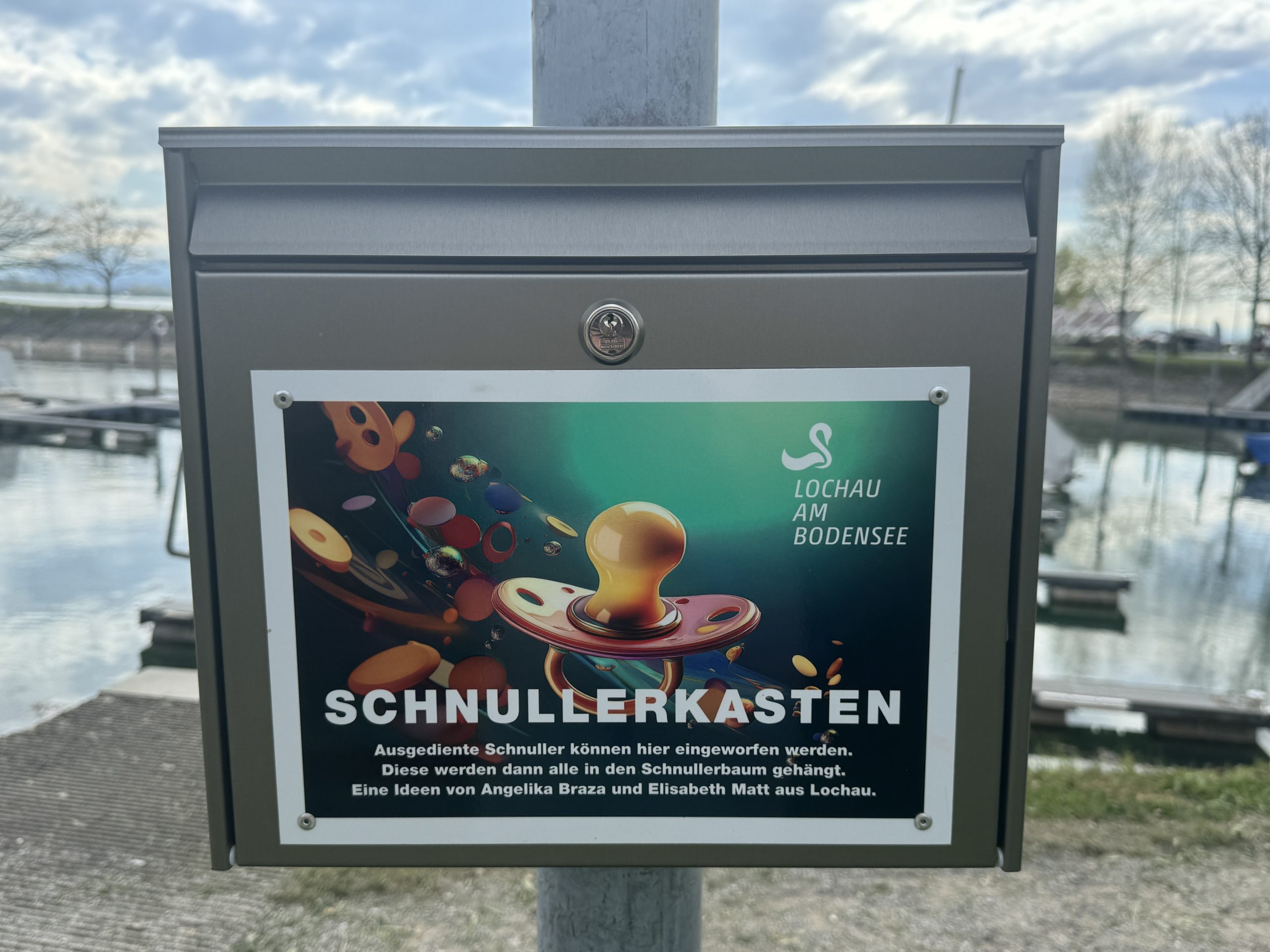 Wie die Gemeinde Lochau mitteilt, sei unklar, ob tatsächlich ein Vandalismusakt hinter dem Schaden steckt oder ob der Kasten schlicht altersbedingt kaputtging. Jetzt heißt es "Hurra! Der neue Schnullerkasten ist da!" aus dem Rathaus. Die lange gepflegte und von vielen Familien geliebte Tradition wird damit wiederbelebt.