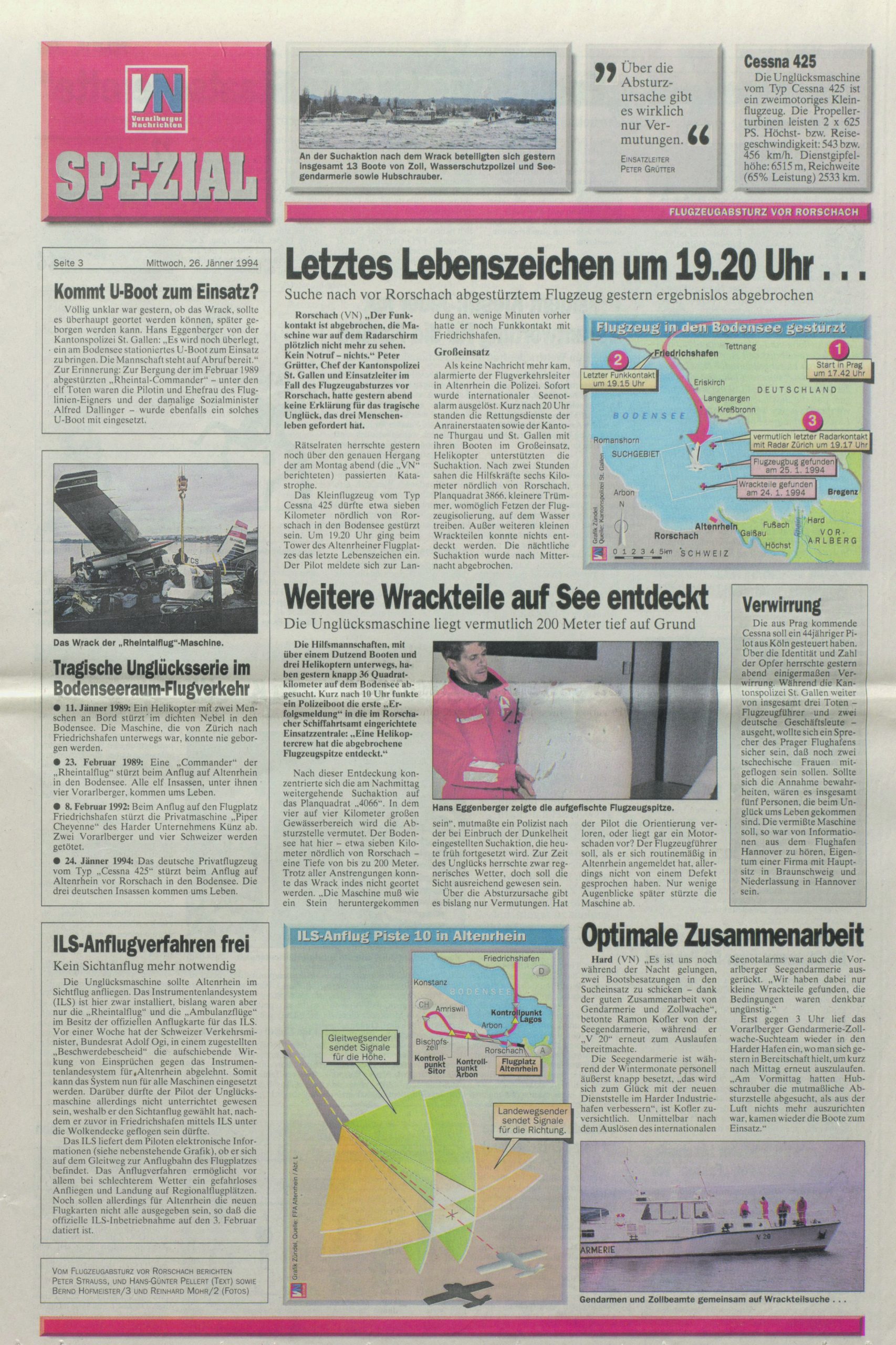 Am 24. Jänner 1994 sorgte ein weiterer Flugzeugabsturz in den Bodensee kurzzeitig für Aufregung. Eine Cesna 425 kam aus Prag und wollte in Altenrhein landen. An Bord: Zwei Uran-Dealer aus Berlin, zwei tschechische Prostituierte, der Hamburger Pilot der Maschine und ein Pudel.