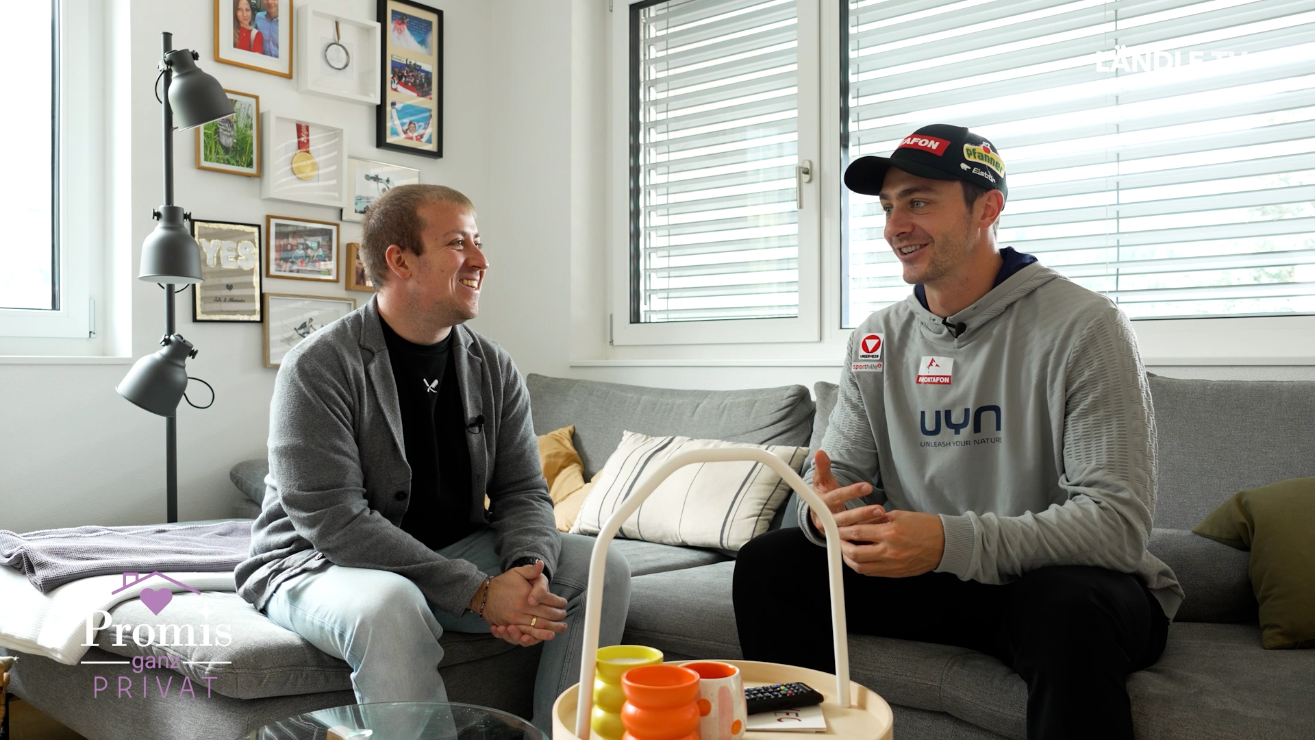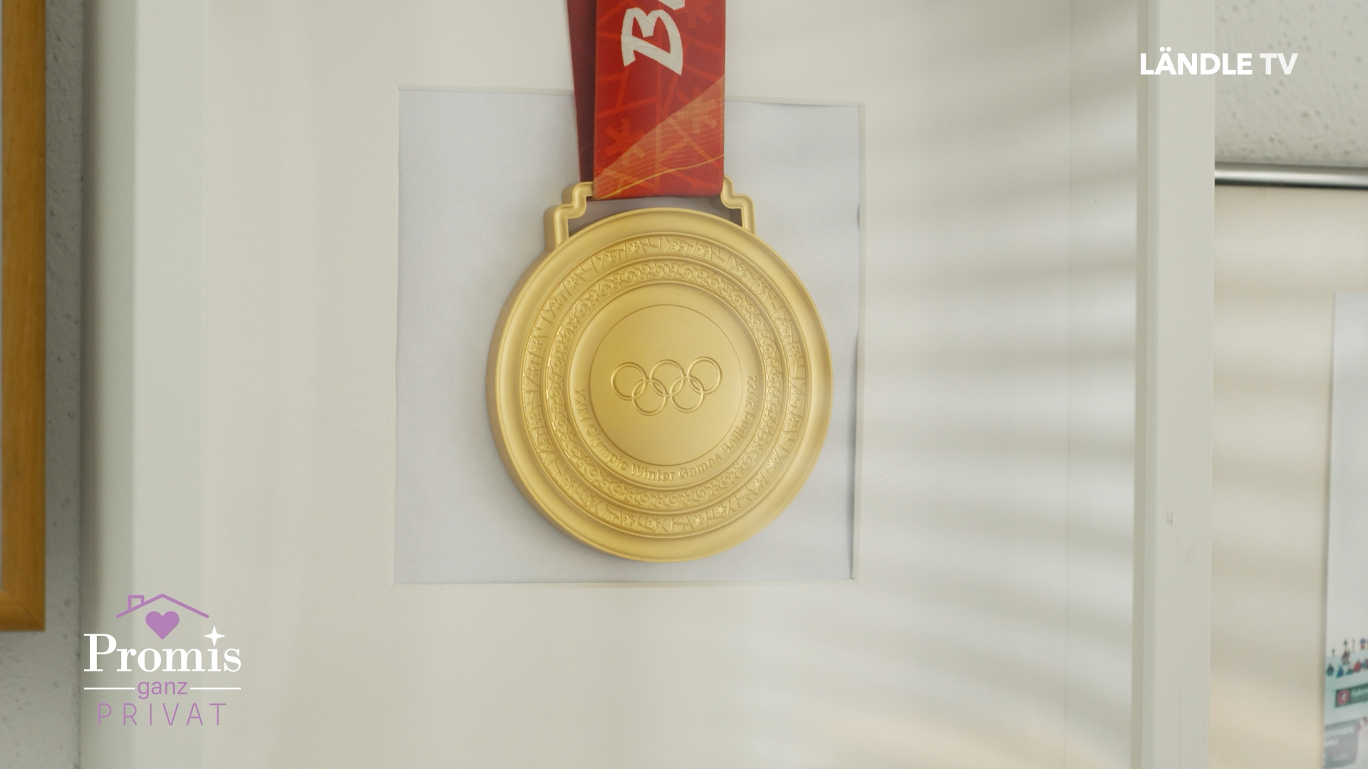 Direkt über der Couch hängt seine Goldmedaille von den Olympischen Spielen 2022 in Peking. "Ich hatte sie noch ziemlich lange im Originalpaket, bis ich sie eingerahmt an die Wand hängte. Es ist eine wirklich schöne Deko." Vom Balkon aus blickt er Richtung Montafon. "Da bin ich im Sommer mit dem Bike viel unterwegs", sagt der im Montafon groß gewordene 32-Jährige.