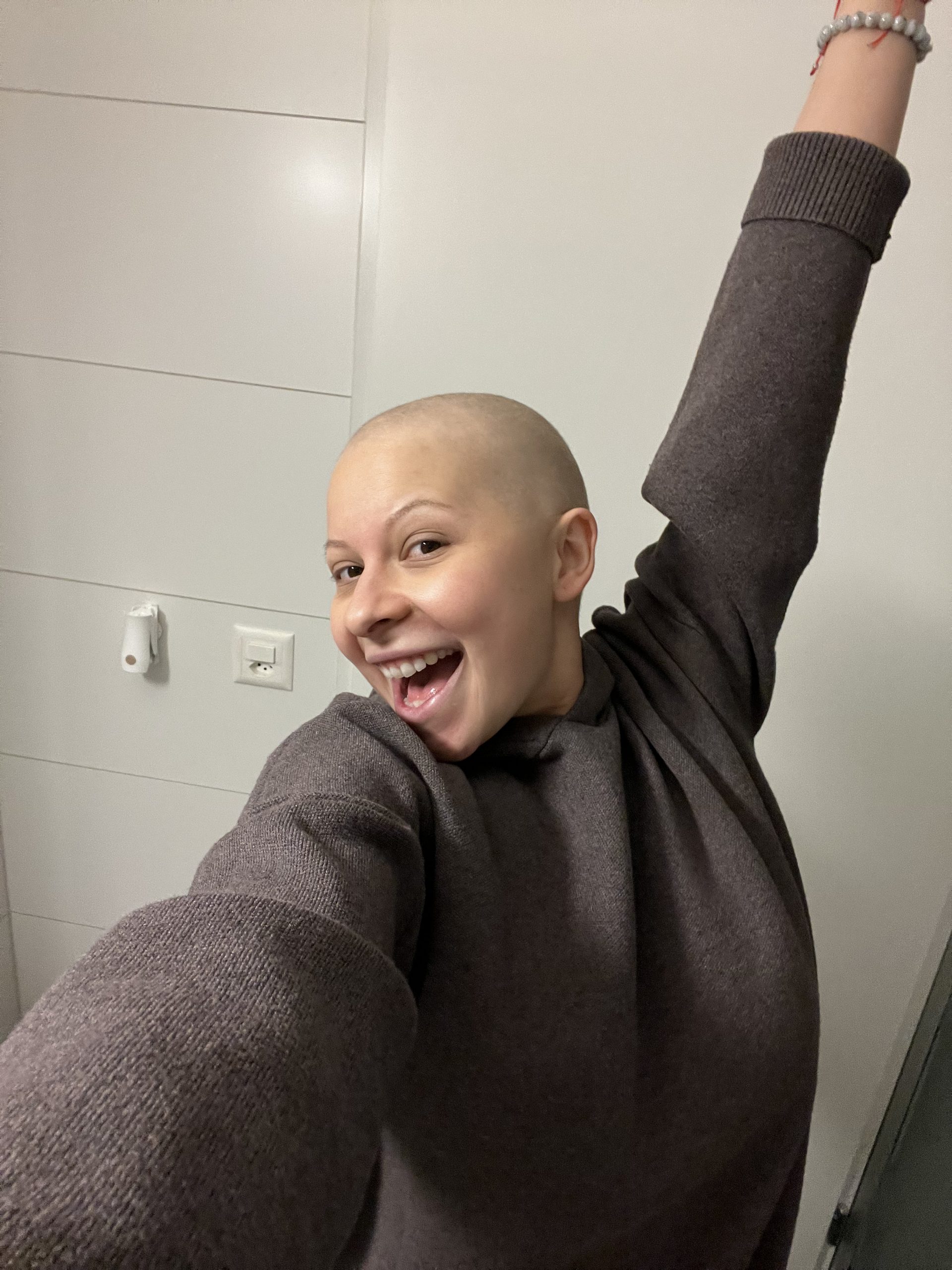 Entschlossen besuchte sie ihre Friseurin, ihre Tante, und ließ sich von ihr die Haare abrasieren. "Ich hatte es schlimmer erwartet. Die vielen Komplimente, die ich erhalten habe, haben mich sehr erfreut."