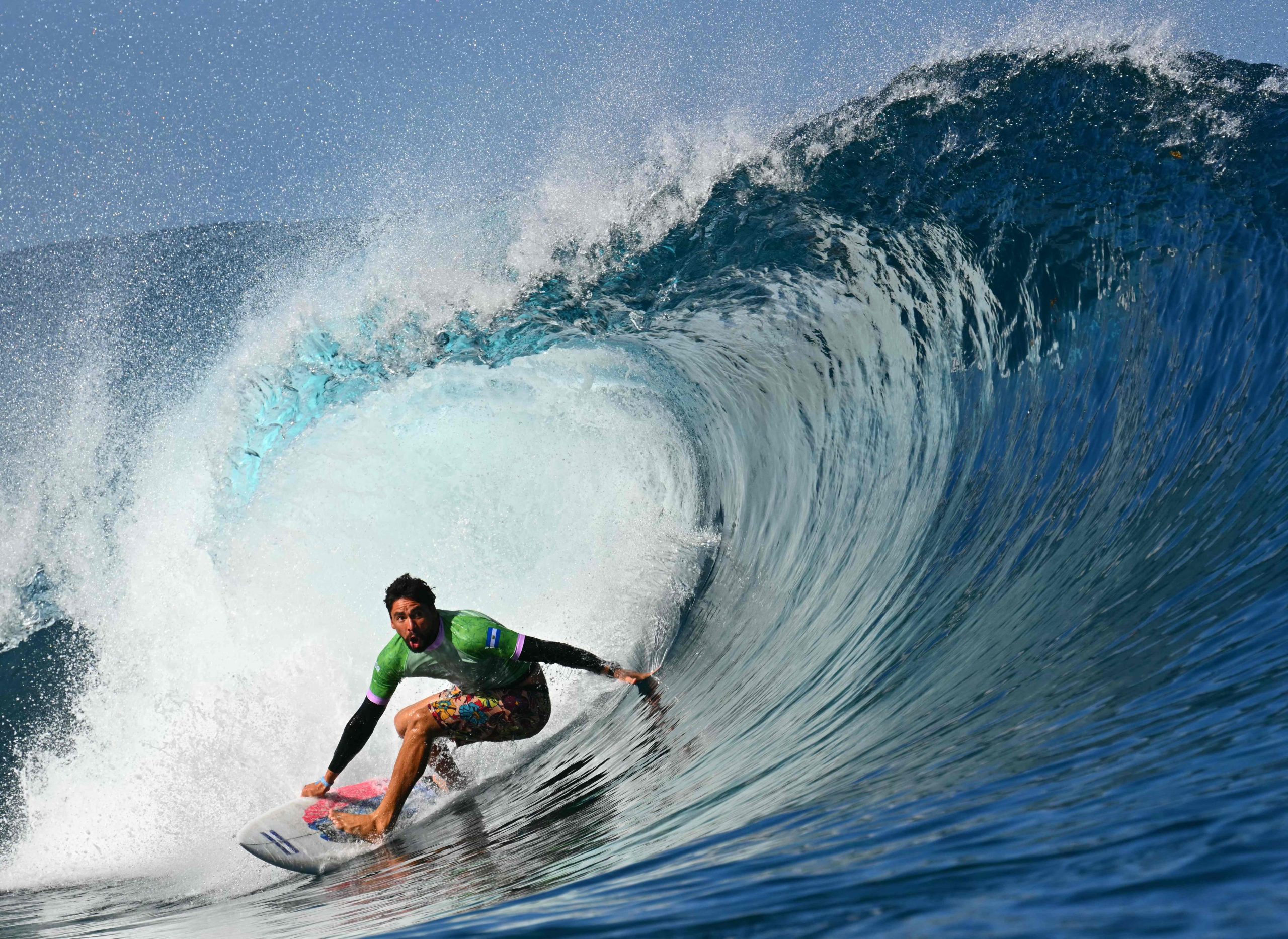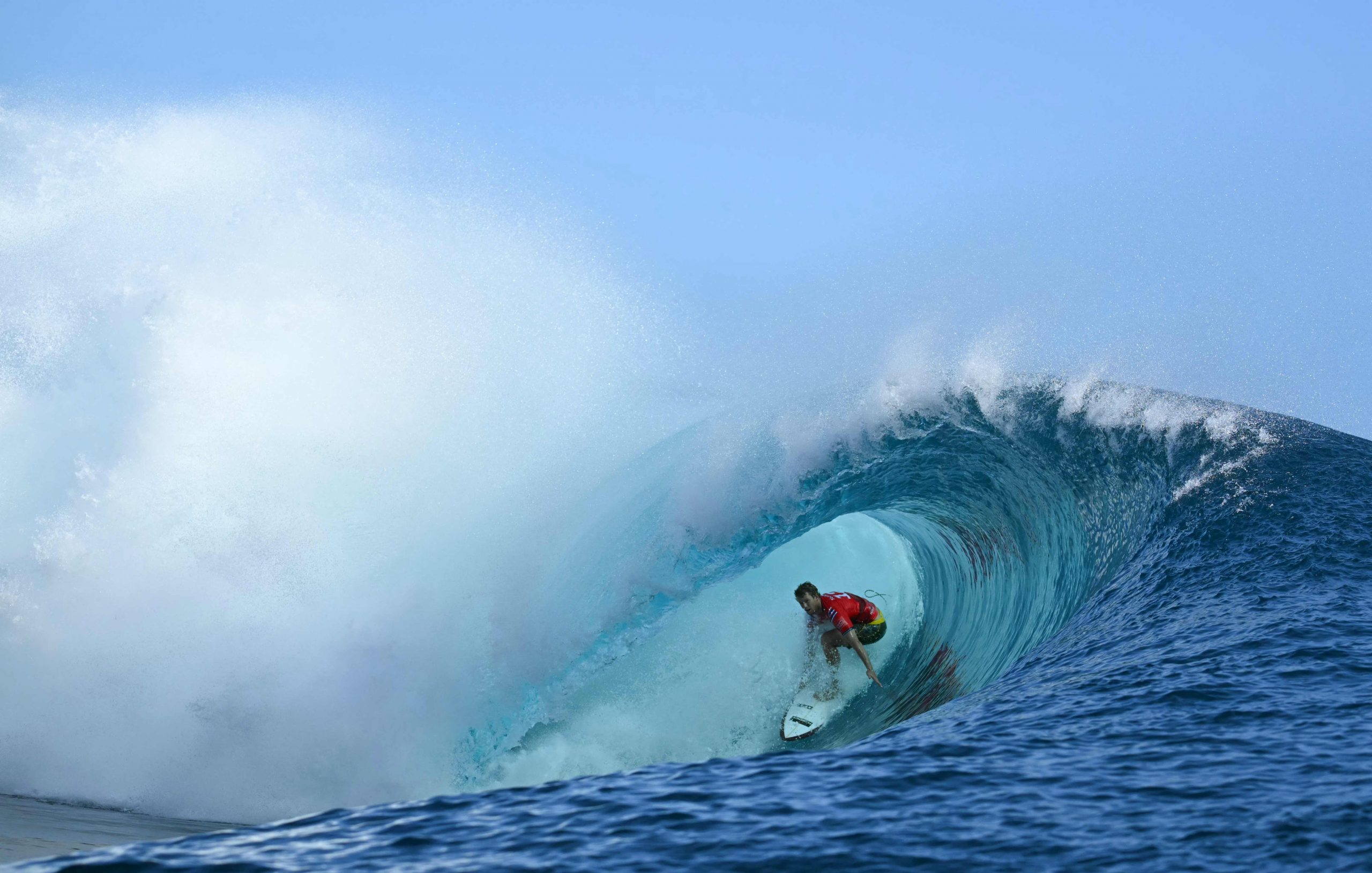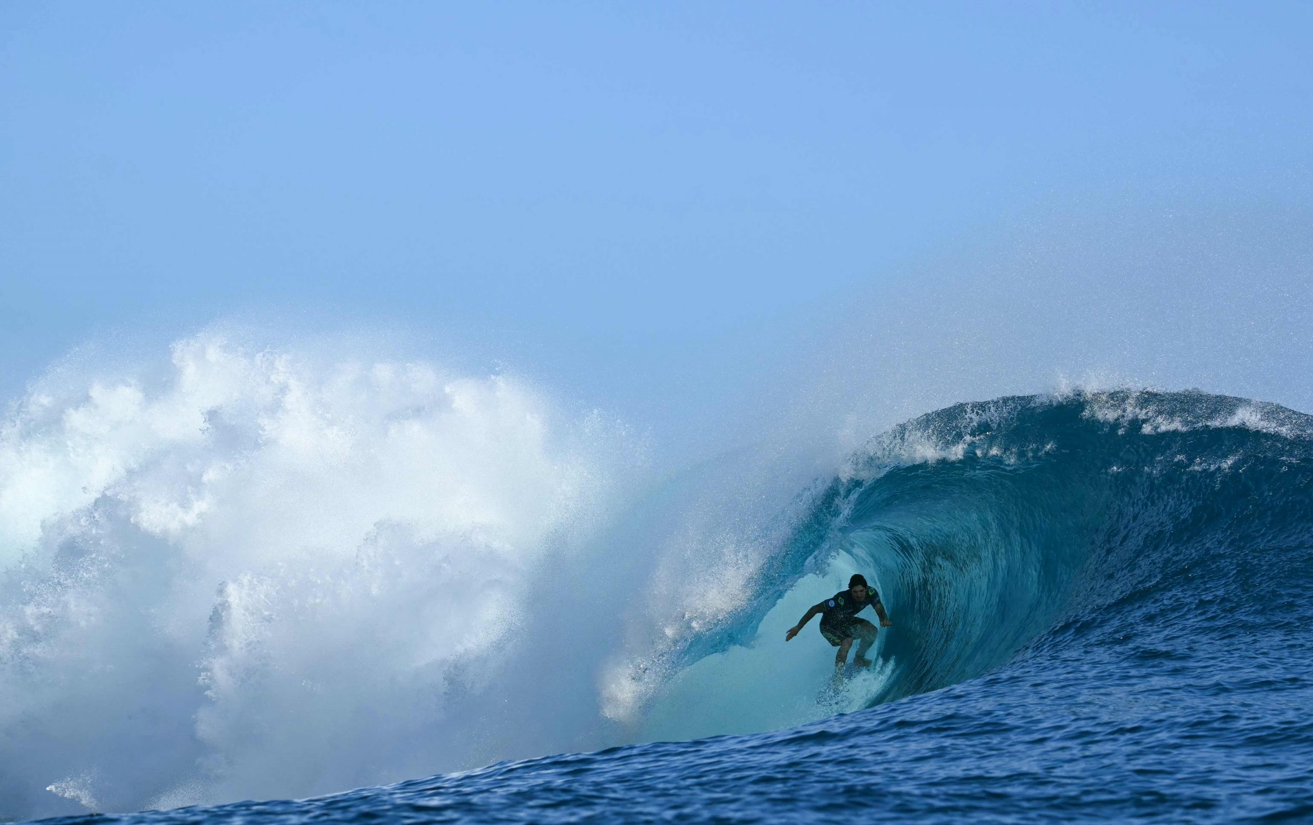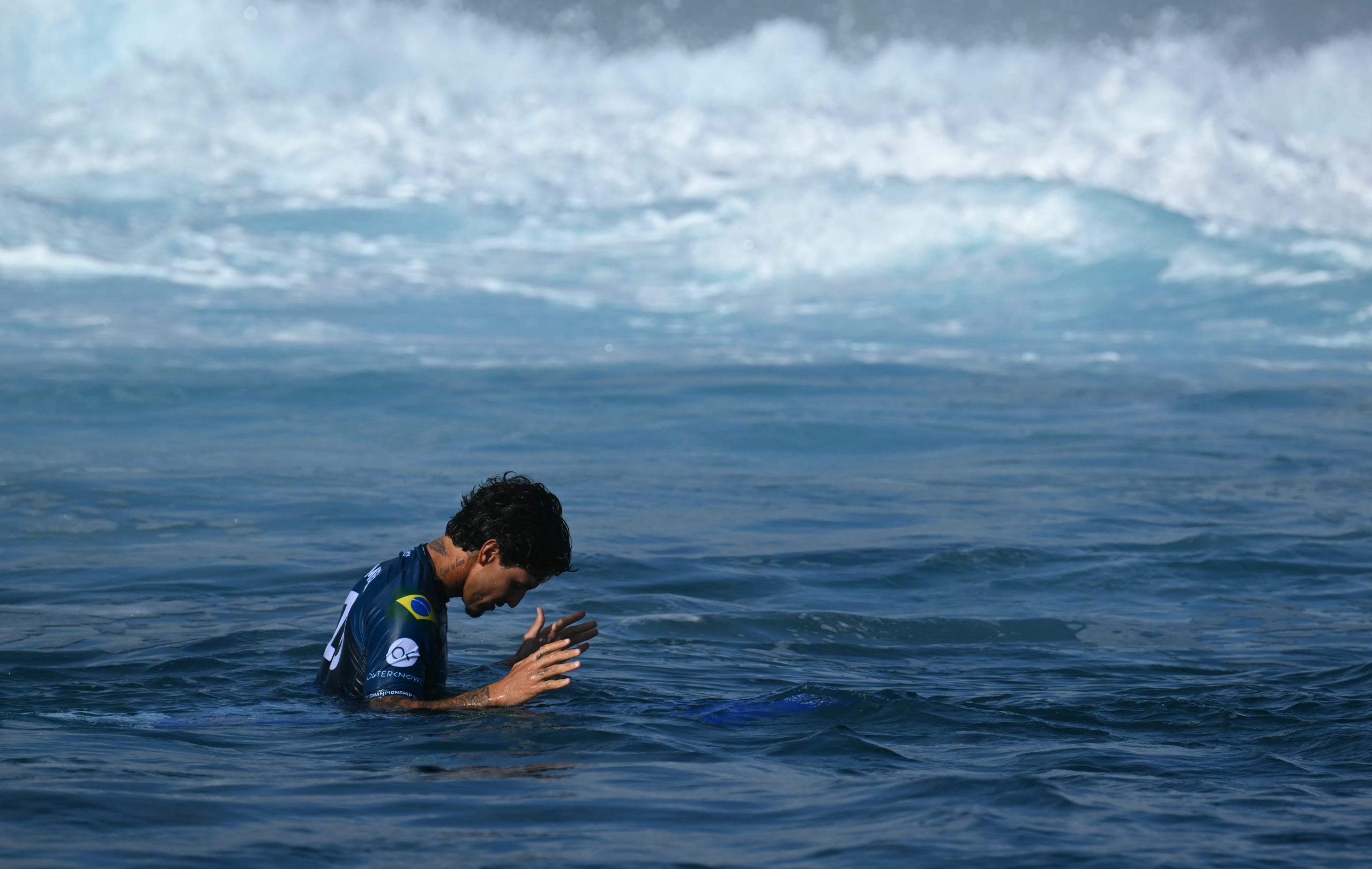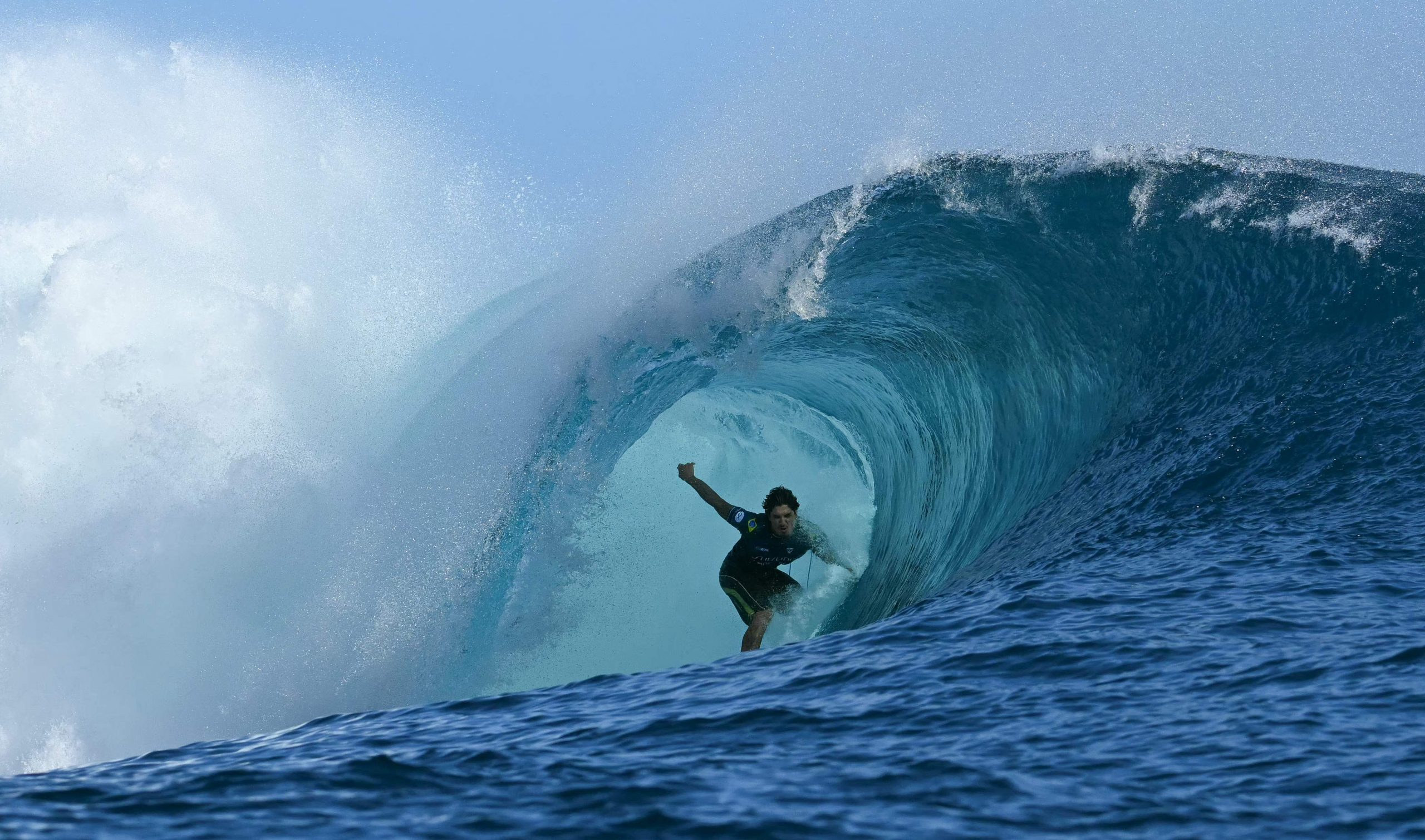 Während der Surf-Wettkämpfe der Olympischen Spiele in Tahiti gelang dem Fotografen Jérôme Brouillet ein spektakuläres Foto. Der brasilianische Surfer Gabriel Medina, einer der besten seines Faches, wurde im richtigen Moment festgehalten, als er aus einer riesigen Welle geschleudert wurde und dabei seinen rechten Zeigefinger in die Luft streckte. Das Foto zeigt Medina scheinbar über dem Wasser schwebend und vermittelt die Dynamik und den Nervenkitzel des Surfens auf höchstem Niveau.