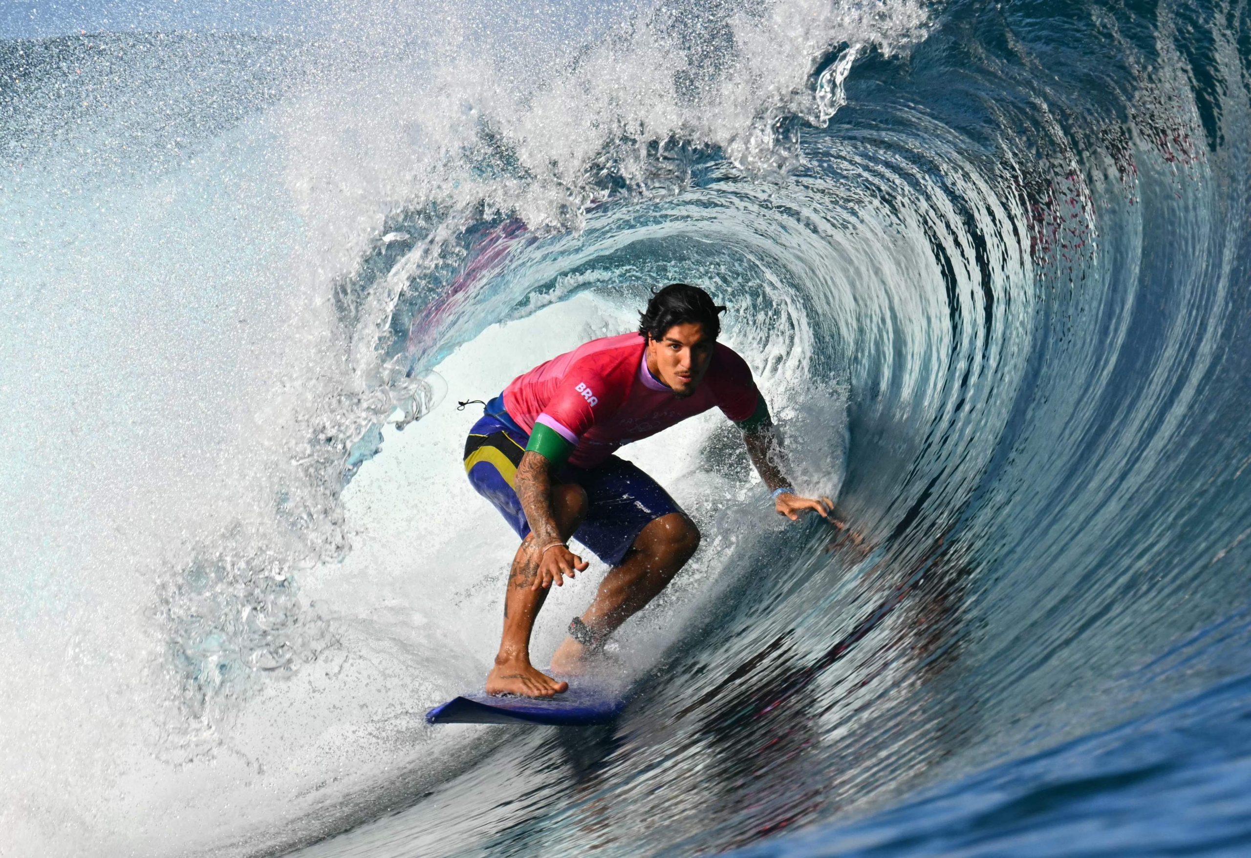 Gabriel Medina bricht Surf-Rekord bei den Olympischen Spielen 2024 und ein französischer Fotograf hat diesen epischen Moment festgehalten.