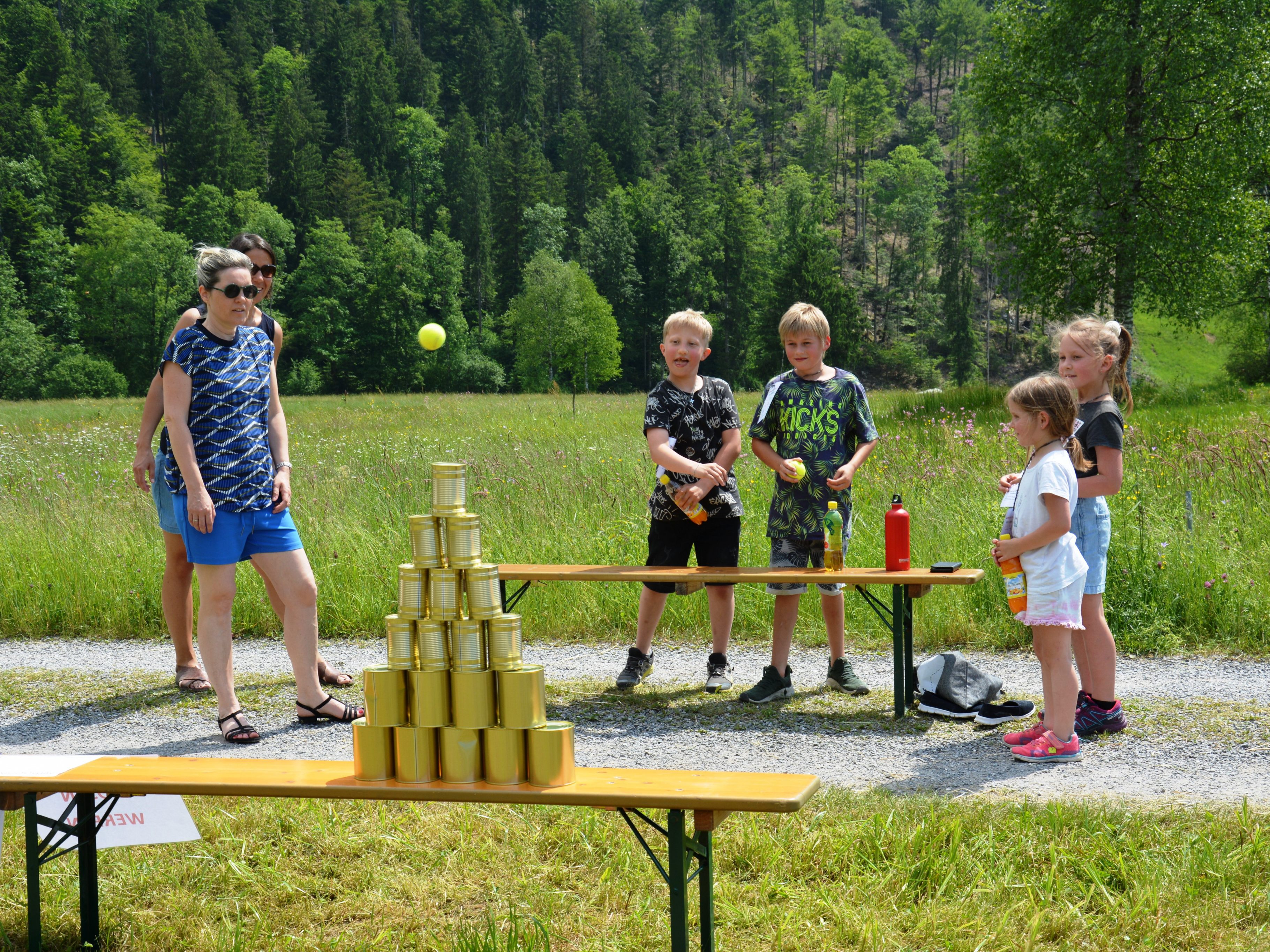 Heuer haben sich die Gemeinden Bezau und Reuthe, gemeinsam mit dem La-Le-Lu-Verein Bezau und dem Familienverband Bezau-Reuthe etwas ganz Besonderes einfallen lassen und veranstalteten einen Spiele-Stationenlauf im Grebauer Moos in Bezau. Es wurden verschiedene Spielstationen – Sackhüpfen, Dosen werfen, Bobbycar fahren, Grasskifahren, Gummistiefel spicken, Schatzsuche – auf dem Rundweg aufgebaut. Die rund 200 Kinder und Erwachsenen hatten sichtlich Spaß und erhielten bei jeder absolvierten Spielestation einen Stempel in den Spiele-Pass. Als Belohnung durften sich alle Kinder über ein Getränk sowie eine gesunde Jause – gesponsert von den Gemeinden Bezau und Reuthe – freuen.