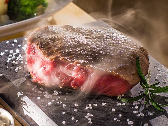 Gegrillt wird am Tisch – Der „HOT STONE“ - Täglich ab 18 Uhr wird bei Bestellung eines Filet Lady’s Cut oder Rib Eye Steak direkt am Tisch gegrillt. Der heiße Stein wird im Backofen bei einer Temperatur von 350 Grad Celsius vorgeheizt. Die Hitze wird im Stein gespeichert, die kontinuierliche und gleichmäßige Abgabe der Wärme garantiert einen fettarmen Bratvorgang und ein perfektes Grillerlebnis.
