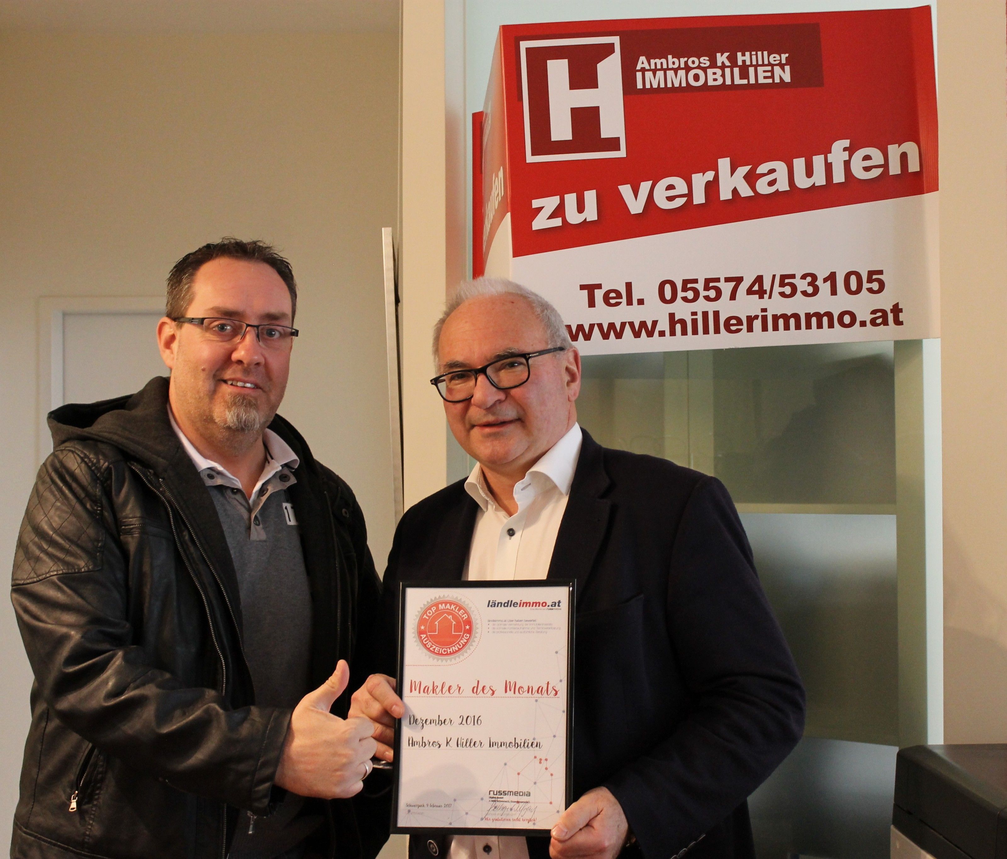 Wolfgang Seeberger von ländleimmo.at durfte dem am besten bewerteten Immobilien-Makler gratulieren und eine Urkunde überreichen. Die Freude war groß. Zu Recht, denn durch Engagement und Fachkompetenz konnte das Team bei den Immobilien-Interessenten punkten und die Bewertung für sich entscheiden – eine stolze Leistung!