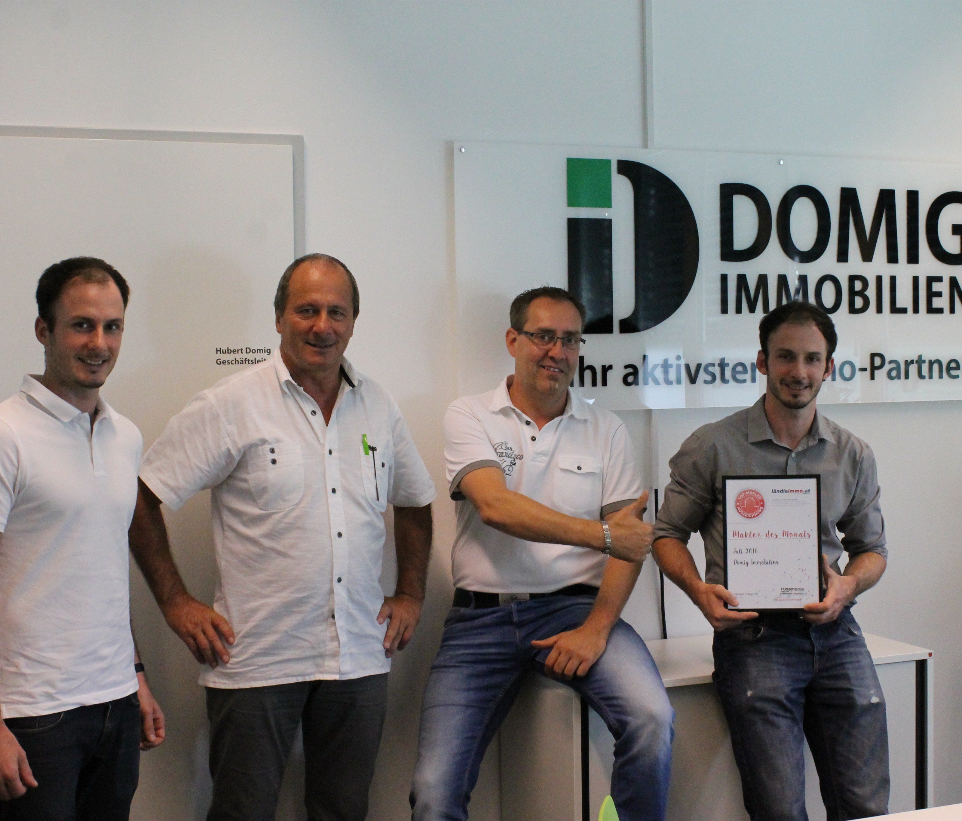 Wolfgang Seeberger von ländleimmo.at durfte dem am besten bewerteten Immobilien-Makler gratulieren und eine Urkunde überreichen. Die Freude im Team war groß. Zu Recht, denn durch Engagement und Fachkompetenz konnte das Team bei den Immobilien-Interessenten punkten und die Bewertung für sich entscheiden – eine stolze Leistung!
