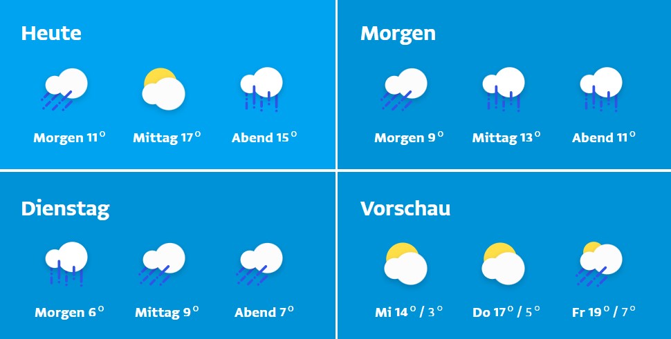 schauerartig regnen mit sich bringen. Sonnige Auflockerungen sind zwar ebenfalls dabei, besonders im Bergland aber meist nicht besonders nachhaltig. Das soll sich über den ganzen Tag ziehen.