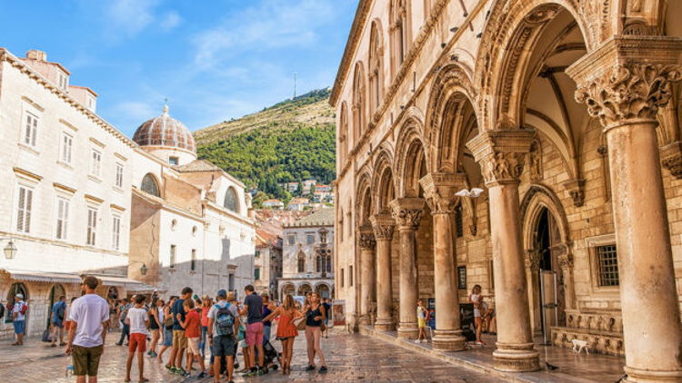 Dubrovnik, Split, Trogir. Während der Stadtführung durch das „Kroatische Athen“ entdecken Sie Dubrovnik mit ihrer subtropischen Vegetation, ihrer Altstadt und der Befestigungsanlage mit dem Franziskanerkloster, in dem sich die älteste Apotheke Europas befindet. Split erkunden Sie mit einem Reiseleiter. Hier bestaunen Sie das UNESCO-Weltkulturerbe, den Diokletianspalast sowie weitere historische Denkmäler. Danach besuchen Sie Trogir, eine kleine Hafenstadt in Mitteldalmatien. In dem von Mauern umgebenen Stadtkern befinden sich zahlreiche Bauten aus der Mittel-alter- und Renaissancezeit.