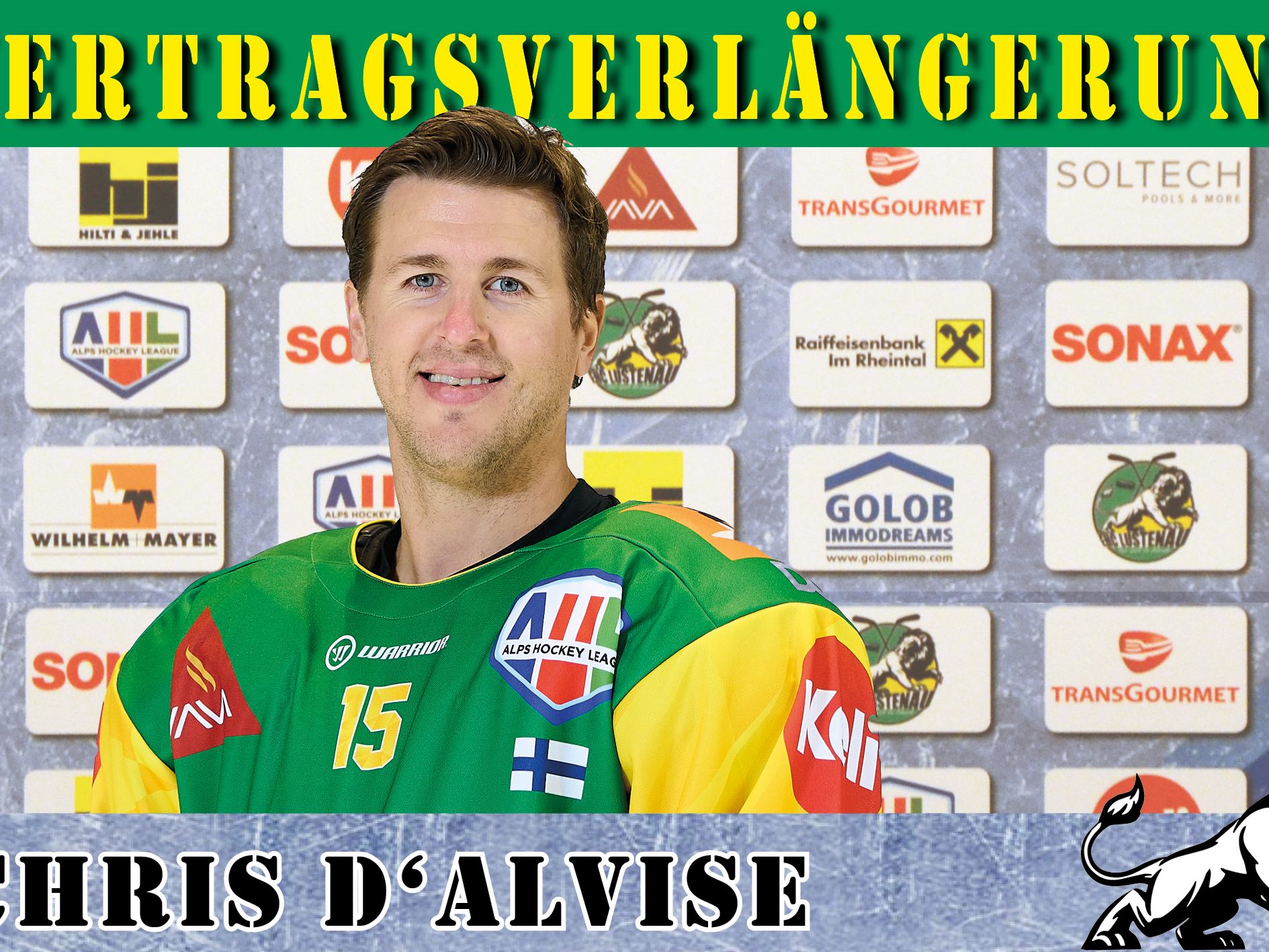 Eine weitere wichtige Vertragsverlängerung meldet der EHC Lustenau. Chris D’Alvise, verlässlicher Torgarant beim EHC Lustenau, verlängert den Vertrag bei den Stickern um eine weitere Saison. Der aus Kanada stammende Vollblut-Stürmer wechselte in der Saison 2018/19 von den Bulldogs Dornbirn zum EHC Lustenau. In den letzten vier Saisonen war er jeweils Top-Scorer im Team. In 146 Spielen erzielte D’Alvise 97 Tore und 119 Assists, was einen Punktedurchschnitt von beinahe 1,5 Punkten pro Spiel darstellt.