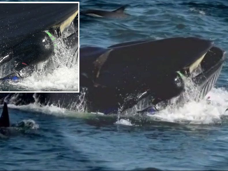 “Der Wal realisierte den Fehler und öffnete sein Maul, um mich freizulassen. Es fühlte sich an, als würde ich zusammen mit Tonnen von Wasser heraus gespült”, sagte Schimpf. Ausgewachsene Brydewale können bis zu 30 Tonnen schwer werden und ernähren sich von Plankton und Fisch.
