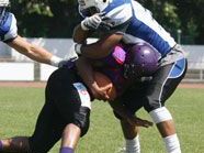 Bei den Cineplexx Blue Devils sind die Nerven im Moment ziemlich angespannt. Nach einem sensationellen Start in die Saison, sah man am vergangenen Wochenende gegen die Basel Gladiators nicht sehr gut aus. Auch wenn vieles an der katastrophalen Leistung eines einzelnen Schiedsrichters lag, darf man sich nicht nur darauf beschränken und muss die Fehler auch im Team selber suchen. Trotz einiger Ausfälle werden die Spieler rund um Head Coach Jim Mader aber alles daran setzen, den zweiten Tabellenplatz zu verteidigen.