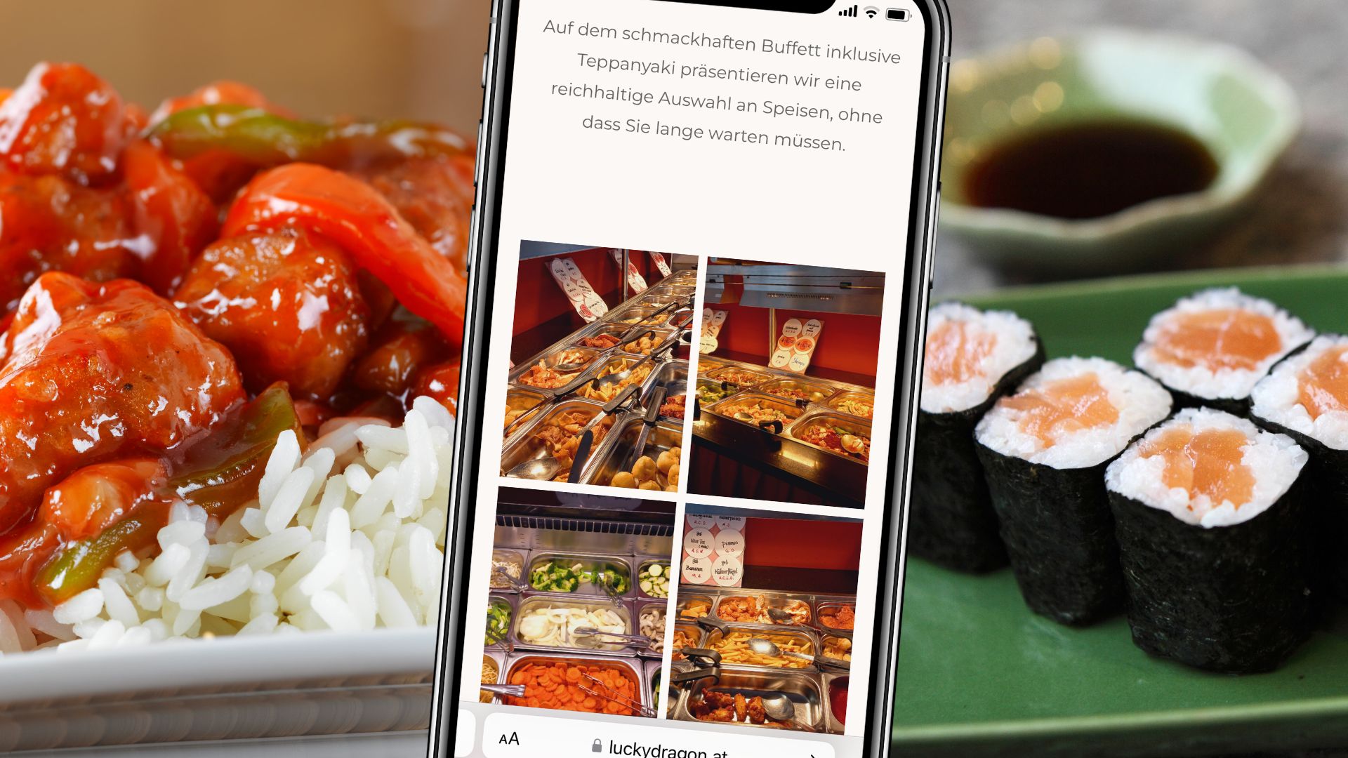 Das Restaurant bietet eine überschaubare, aber trotzdem vielfältige Speisekarte. ©Screenshot Lucky Dragon (www.luckydragon.at)/Canva (Symbolbilder)