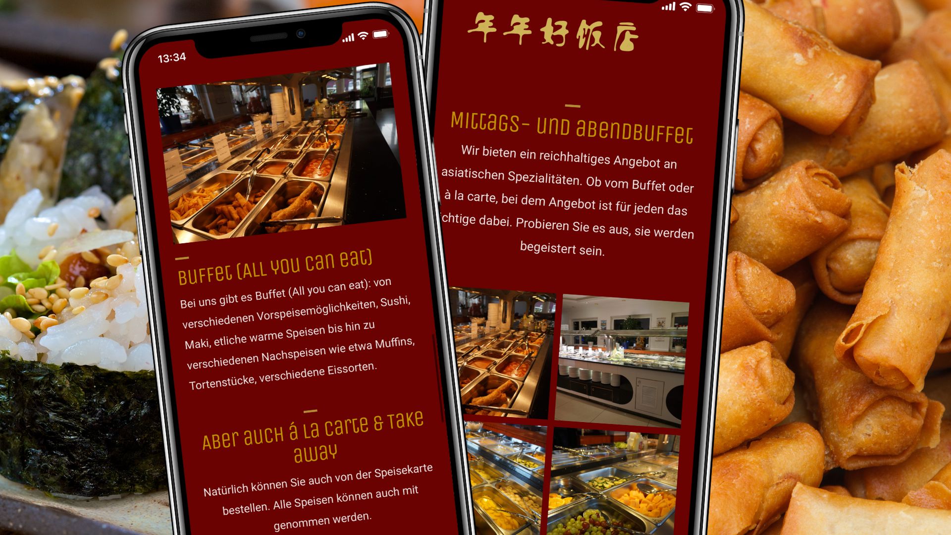 Das Herzstück des Restaurants ist zweifellos das üppige Buffetangebot. ©Screenshots Nian Nian Hao (www.niannianhao.at)/Canva (Symbolbilder)