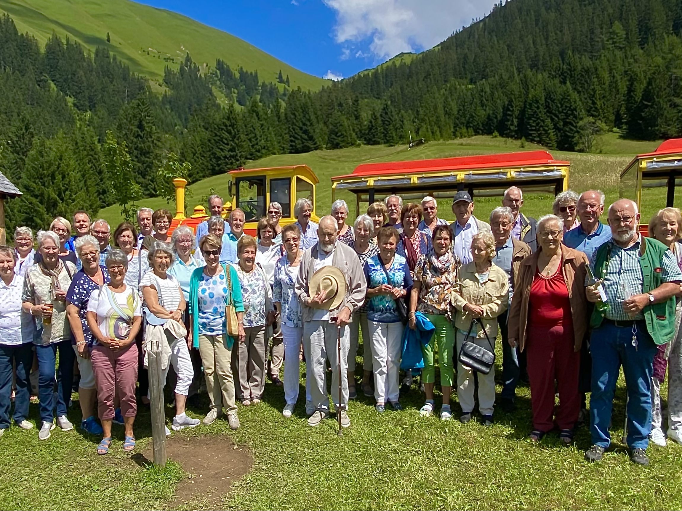 In Stanzach ging es ins wildromantische Namlostal, zur höchstgelegenen Gasthausbrauerei in Österreich auf 1285m Höhe im Ortsteil Rinnen, der Gemeinde Berwang. Nach ausführlicher Brauereibesichtigung freuten wir uns auf das Mittagessen mit Bierbegleitung, zum Abschluss noch ein Bierlikör mit Sahnehäubchen. Zur Musik wagten einige ein Tänzchen, bevor die Fahrt mit dem Panoramazug (traumhafte Sicht zu den umliegenden Alpen und Berggipfel) nach Mitteregg (1349m) ins Rotlechtal an das „Ende der Welt“, unser heutiges Ziel, ging.