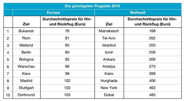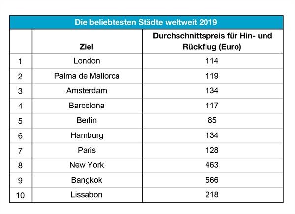 • Die beliebtesten Flug-Reiseziele 2019
