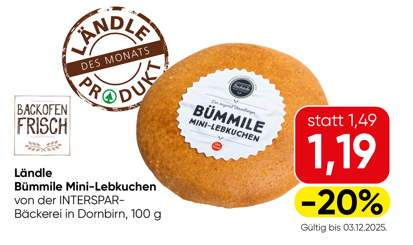 Entdecken Sie die süße Seite Vorarlbergs: Unser „To go Lebkuchen Bümmile“ vereint traditionelle Backkunst mit feinsten Zutaten aus Österreich. Saftig-weich, herrlich aromatisch und verfeinert mit echtem österreichischem Blütenhonig – das ist purer Genuss, wann und wo Sie wollen. Perfekt für die kleine Auszeit zwischendurch oder als süßes Geschenk für Ihre Liebsten. Probieren Sie die Vorarlberger Spezialität, die nach Heimat schmeckt!