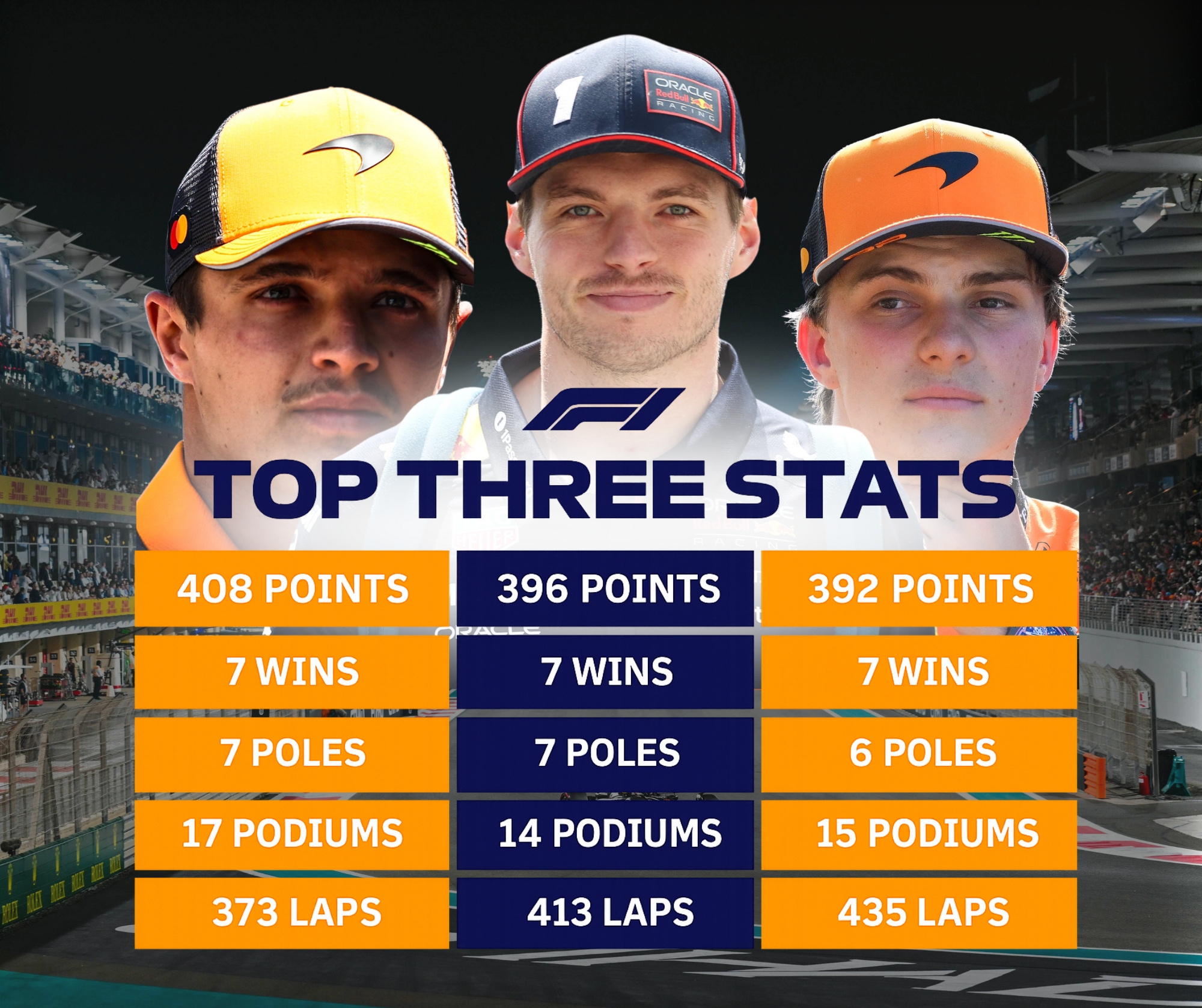 Das letzte Rennen der Saison (Sonntag/14.00 Uhr) wird zum Titelduell zwischen Lando Norris, Max Verstappen und Oscar Piastri. Zum ersten Mal seit 2010 kämpfen drei Piloten beim finalen Grand Prix noch um die Weltmeisterschaft.
