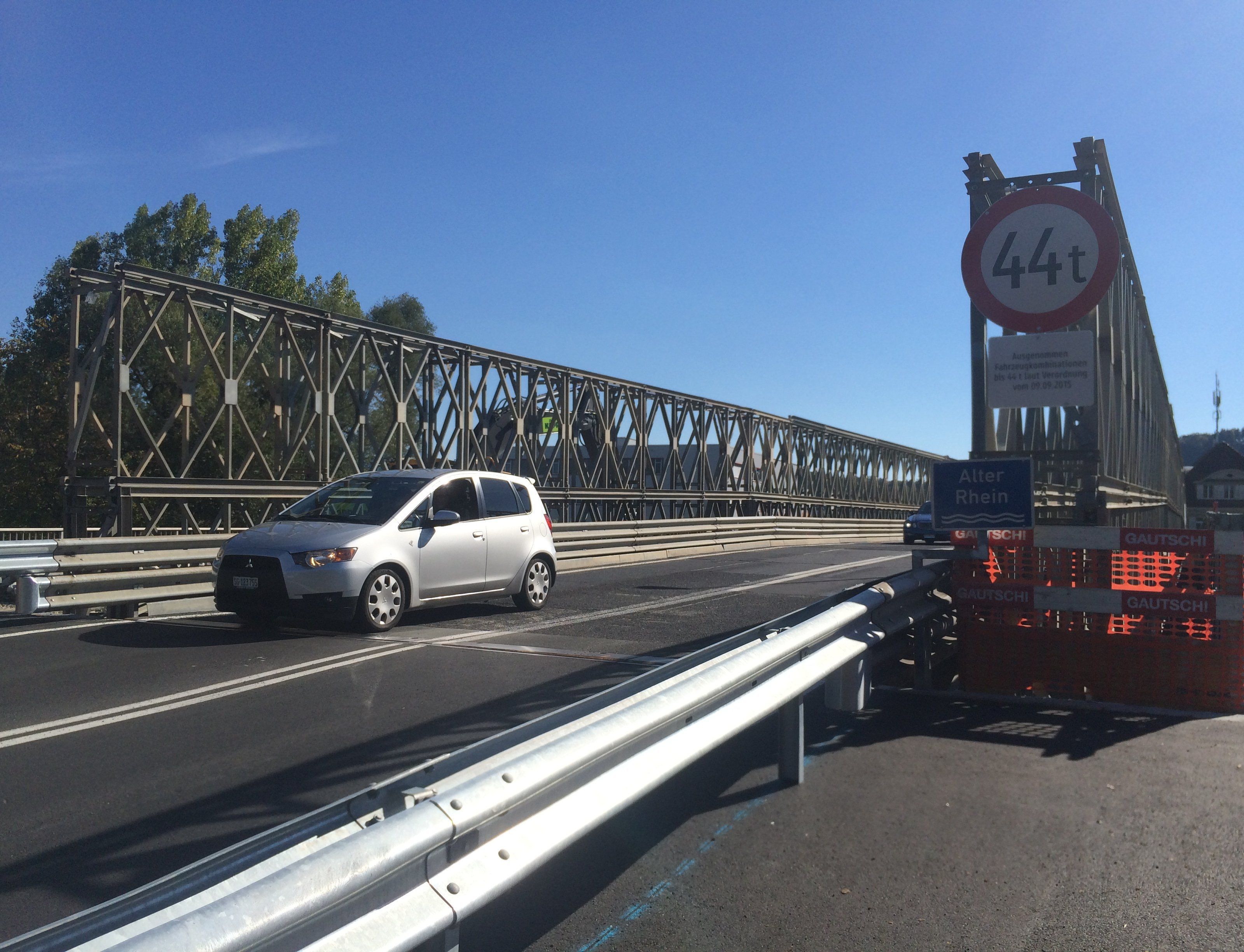 Die Schweiz lässt sich die Ersatzbrücke einiges kosten: Die Ausgaben für Errichtung und Miete betragen rund 2,8 Mio. Franken. Nach Fertigstellung der neuen Brückenkonstruktion Anfang 2018 wird die Hilfsbrücke wieder abgebaut. Insgesamt kostet der Neubau der Grenzbrücke über den Alten Rhein und die A1 rund 10 Millionen Franken (9,15 Millionen Euro). Das Land Vorarlberg beteiligt sich mit rund 3,9 Millionen Euro am Projekt.