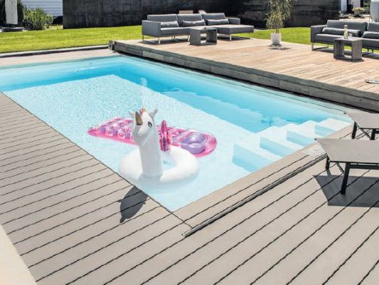 Viele Vorteile vereint die Barfußdiele von megawood® , die darin enthaltene Verbindung aus 75 Prozent natürlichen Holzfasern und 25 Prozent hochwertigen polymeren Zusätzen ergibt einen Werkstoff mit herausragenden Terrassenqualitäten: Die Dielen sind garantiert splitterfrei, witterungsfest und besitzen eine fühlbar angenehme Oberfläche. Der Holzanteil stammt aus einheimischen, nachhaltig bewirtschafteten Holzbeständen. Die Dielen sind zu 100 Prozent wiederverwertbar. Stark im Kommen ist auch das extrem wartungsarme Hochleistungsholz Thermoesche – hier abgebildet als elegante Poolabdeckung. Die gezeigten Terrassendielen stammen von megawood und sind in Schiefergrau ausgeführt – können aber auch in vielen anderen Farben bestellt werden. Moderne Holzkompositionen eröffnen eine Vielzahl an Gestaltungsmöglichkeiten und machen die Terrasse zum Inbegriff eines schönen Lebens zu jeder Jahreszeit.
