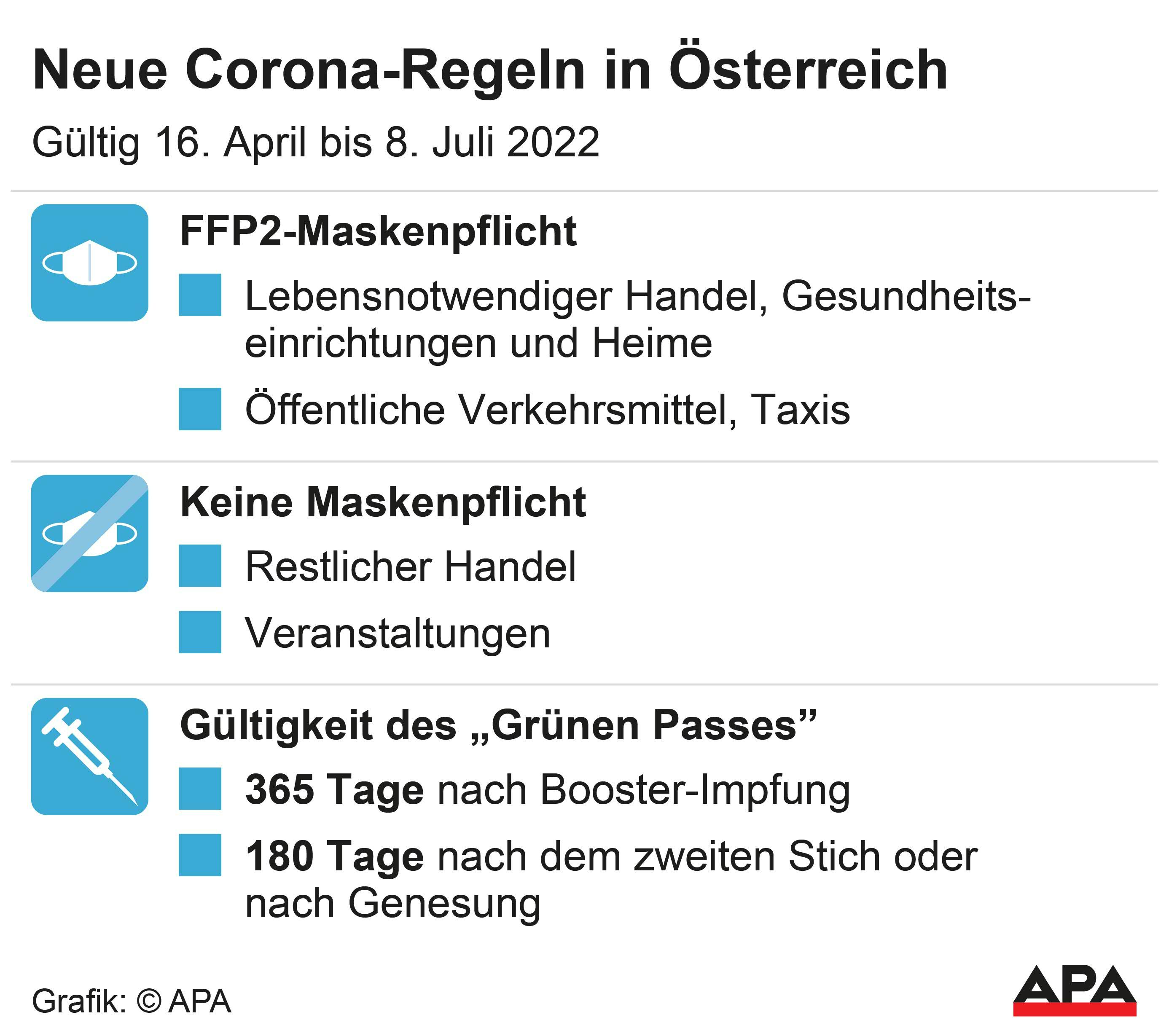 Ab Karsamstag sind die Corona-Regeln wieder lockerer. Am deutlichsten wird das in Wien, das bisher noch restriktivere Maßnahmen wie 2G in der Gastronomie hatte. Aber auch im Rest des Landes werden die Erleichterungen spürbar sein, etwa mit der Abschaffung der Maskenpflicht im nicht lebensnotwendigen Handel. Im Folgenden ein Überblick über die bis 8. Juli geltenden Regeln.