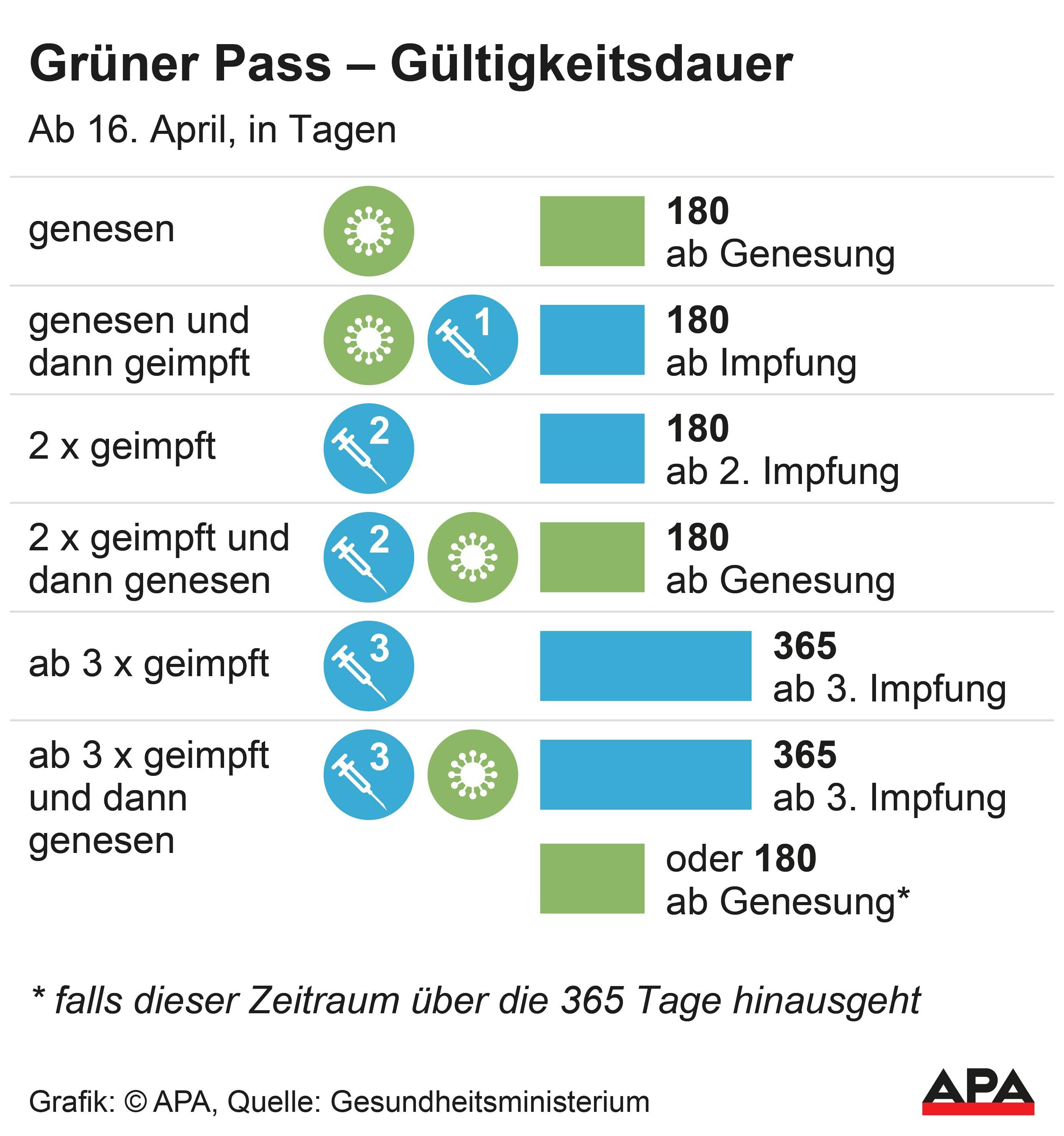 Auch wenn man im Land nur noch in Ausnahmefällen einen G-Nachweis braucht, ist er in etlichen Staaten für die Einreise obligatorisch. Hier dehnt die Regierung die Gültigkeit aus, allerdings nur nach abgeschlossener Grund-Immunisierung, worunter man drei Impfungen versteht. Hier gilt der Grüne Pass nunmehr 365 Tage, also ein Jahr. Eine Zweitimpfung darf hingegen nur 180 Tage zurückliegen, bzw. bei Personen bis zum vollendeten 18. Lebensjahr 210 Tage. Auch eine Genesung wird weiter nur 180 Tage akzeptiert, um die Vorgaben des Grünen Passes zu erfüllen.