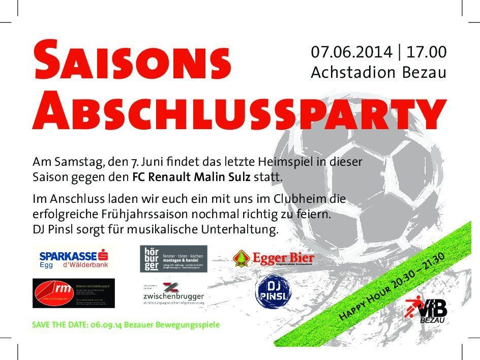 Gemeinsam mit unseren Sponsoren, Fans, Gönner,… wollen wir die erste Saison in der 1. Landesklasse ausklingen lassen und laden euch alle recht herzlich dazu ein. Neben einer Happy Hour sorgt DJ Pinsl für die musikalische Unterhaltung.