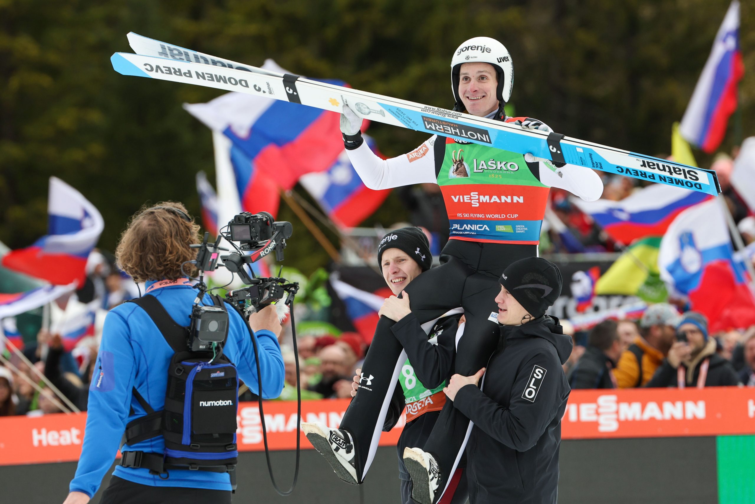 Die Weltcupkugeln waren bereits vergeben, dass aber ein neuer Skiflug-Weltrekord auch noch kommt, damit hatte niemand gerechnet - außer vielleicht Domen Prevc selbst. "Ich zittere am ganzen Körper. Wenn man ein wirklich gutes Buch liest oder einen richtig guten Film sieht: Ich fühle mich wie einer der Hauptdarsteller gerade", sagte der Slowene im ORF-Interview. Den Rekord von Kraft nach acht Jahren gebrochen zu haben, erfüllt einen großen Traum des auf den Skiflugschanzen diese Saison überragenden 25-Jährigen. "Es war eine lange Zeit. Es ist ein Traum, unglaublich. Es war eines der Hauptziele meines ganzen Lebens."