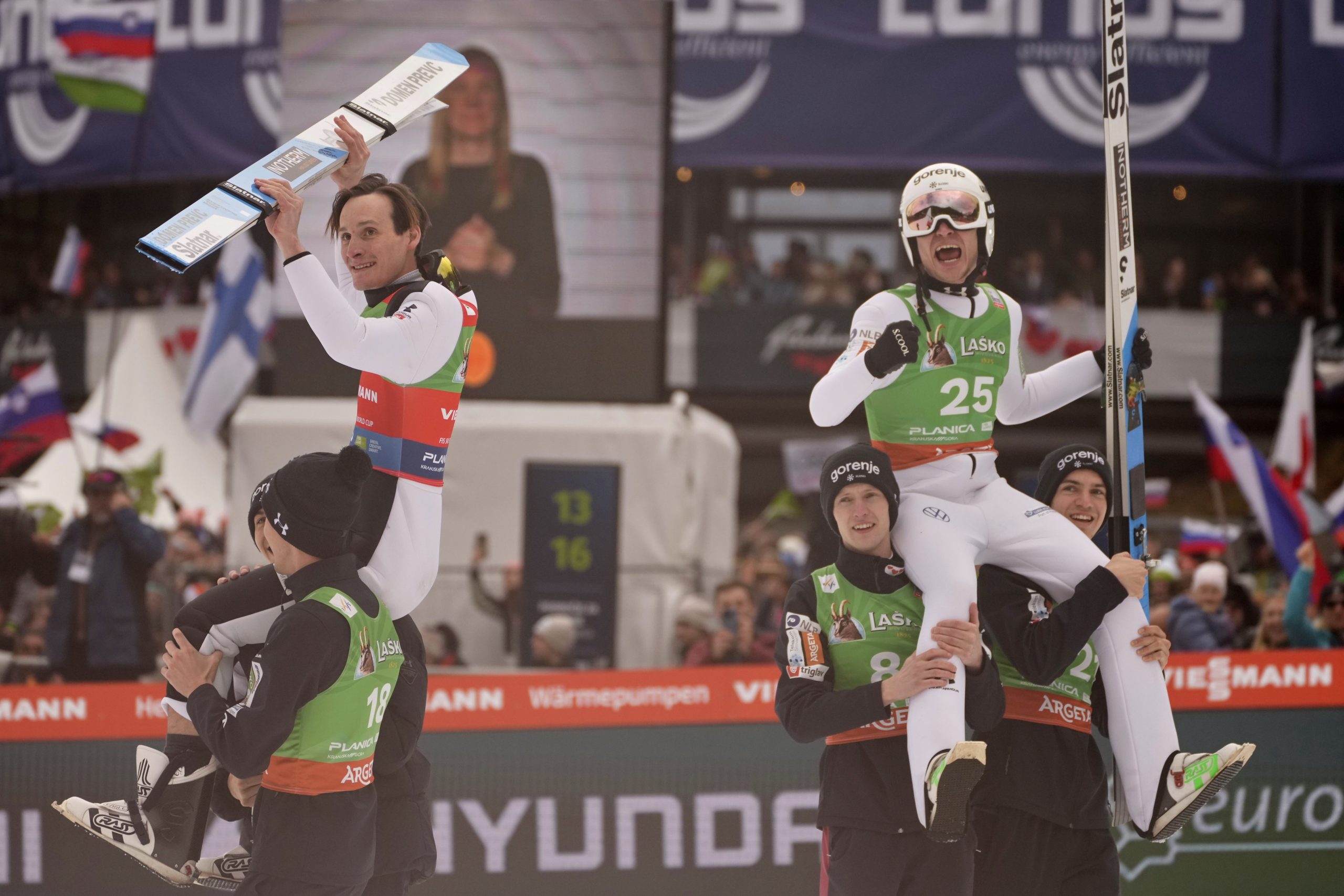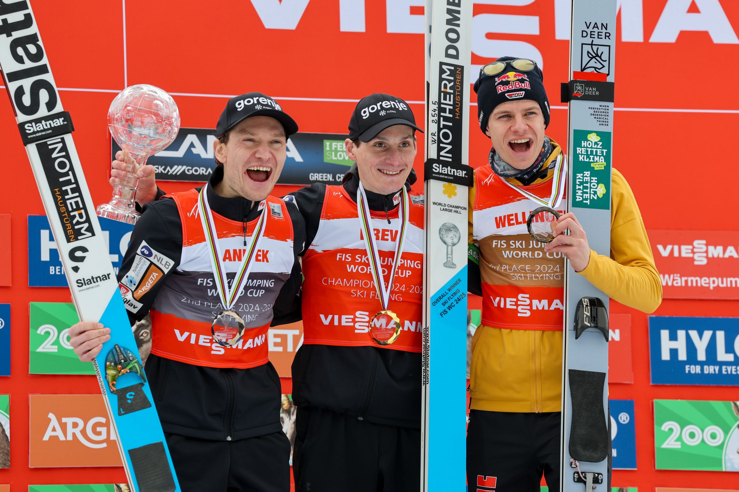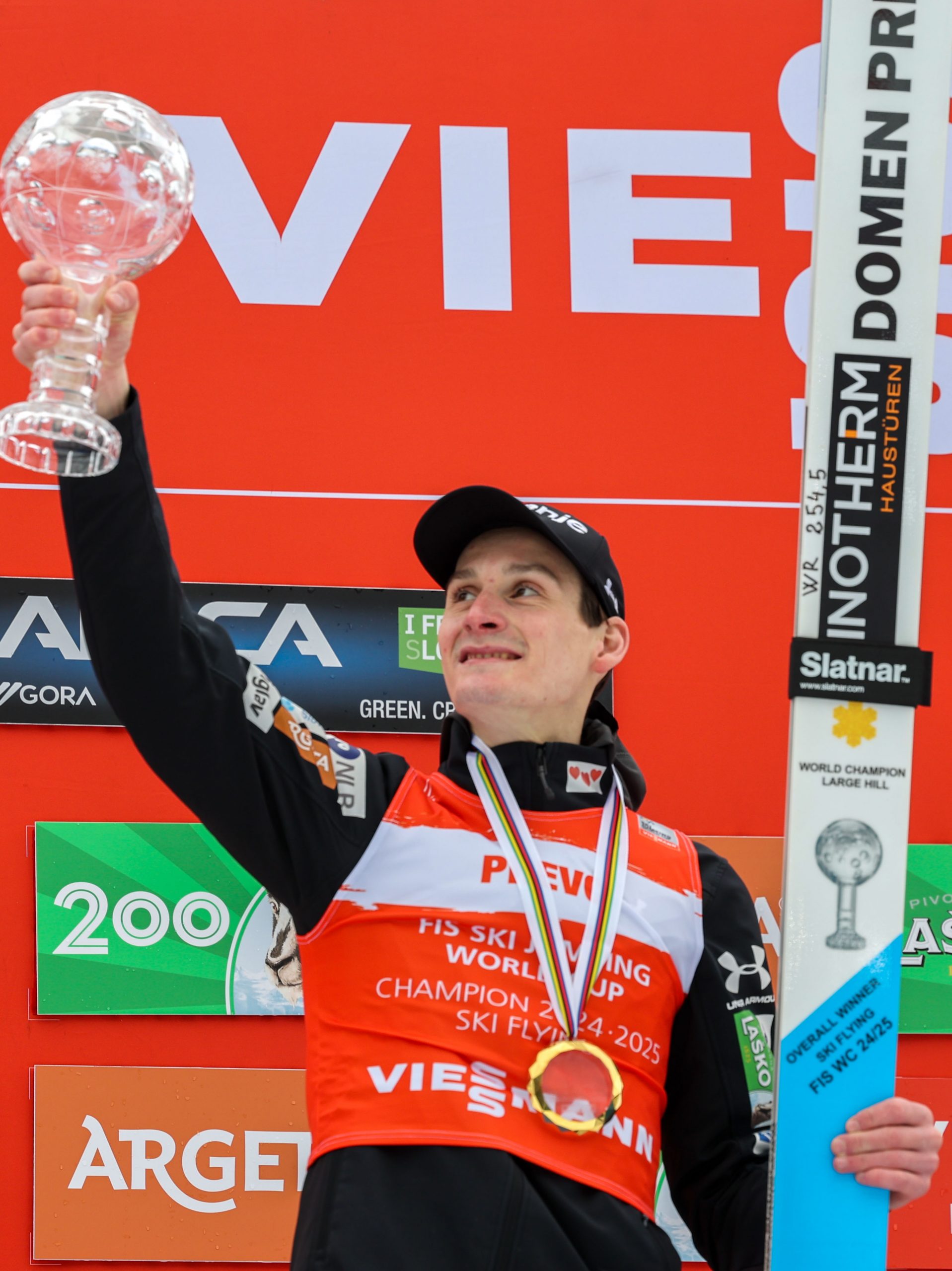 Dennoch resümierte Tschofenig die Saison mit hoher Zufriedenheit. "Genial natürlich. Ersten Weltcupsieg feiern dürfen, sieben weitere feiern dürfen, Vierschanzen-Tournee gewonnen. Die WM ist nicht so gelaufen, aber jetzt mit dem Gesamt-Weltcupsieg dazustehen, ist absolut genial." Jan Hörl, auch zweifacher Saisonsieger und 14-mal auf dem Podest, war glücklich. "Den letzten Sprung hab ich noch einmal sehr genossen. Es war das Ziel, dass ich auf die 240 hinkomme. Ich blicke auf die Saison sehr schön zurück. Auch die WM war mit vier Medaillen sensationell für mich."