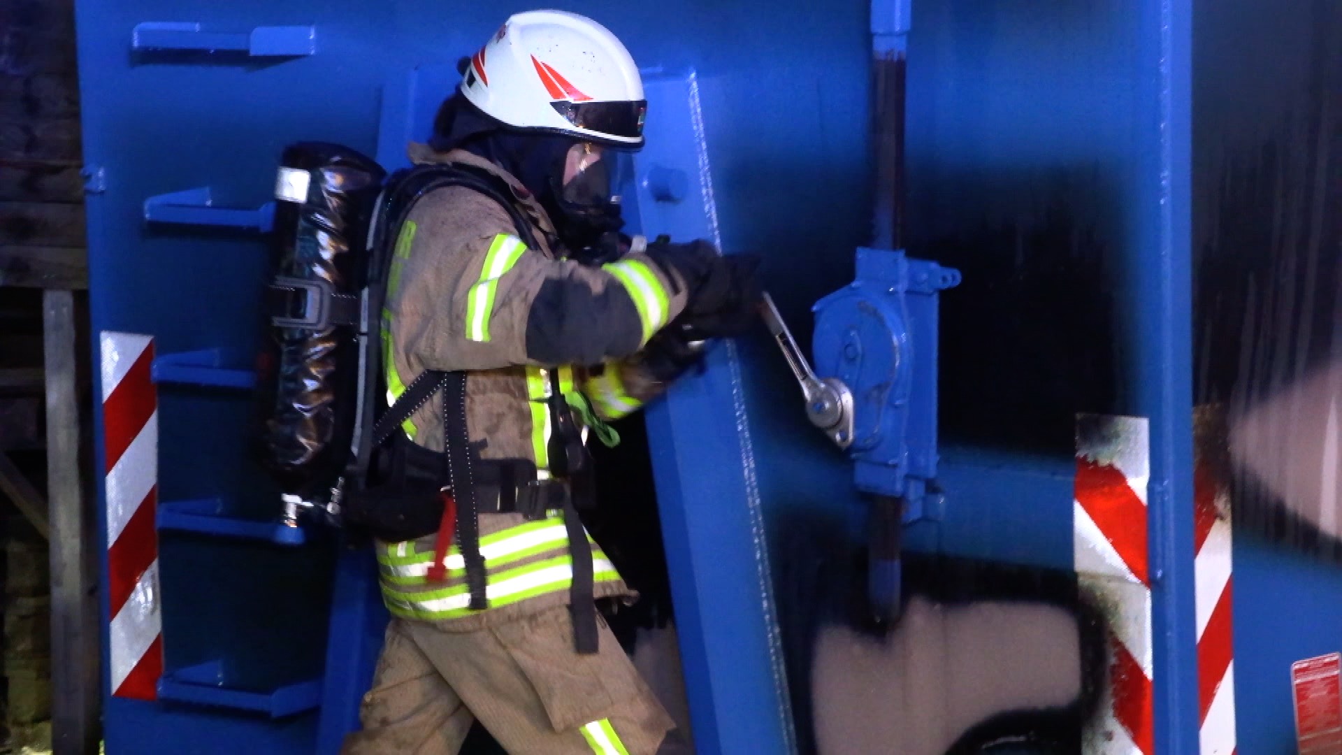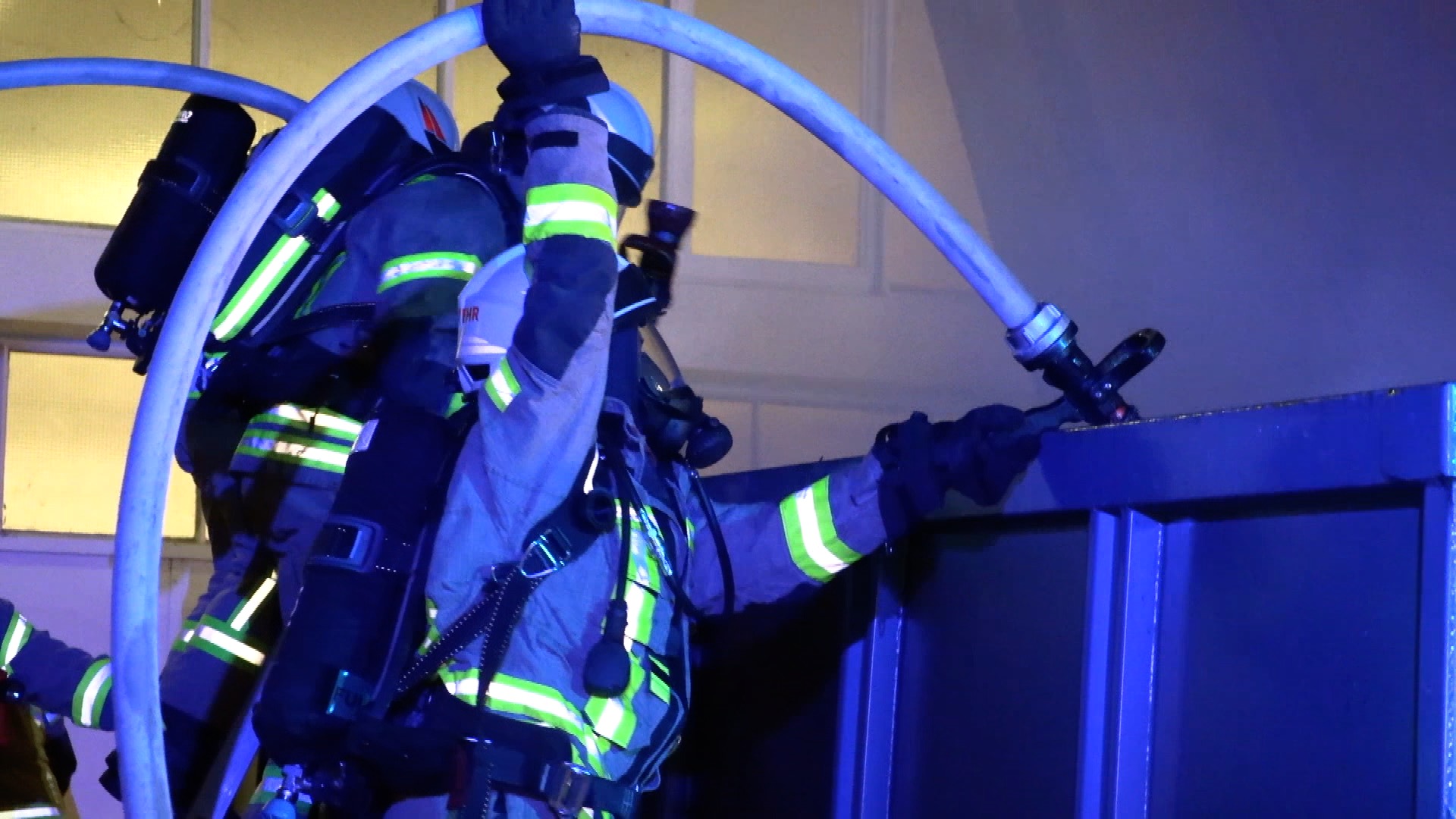 Am Samstagabend feierte ein Vorarbeiter mit weiteren Arbeitskollegen seinen Firmenausstand. Nach dem Grillen löschte er die Grillkohlen seines Einweg-Grills mit Orangensaft ab. Anschließend warf er die Grillkohle in den unmittelbar neben einem Lagergebäude stehenden Sperrmüllcontainer. Dieser fing anschließend auf Grund der immer noch heißen Kohlen Feuer und geriet in Vollbrand.