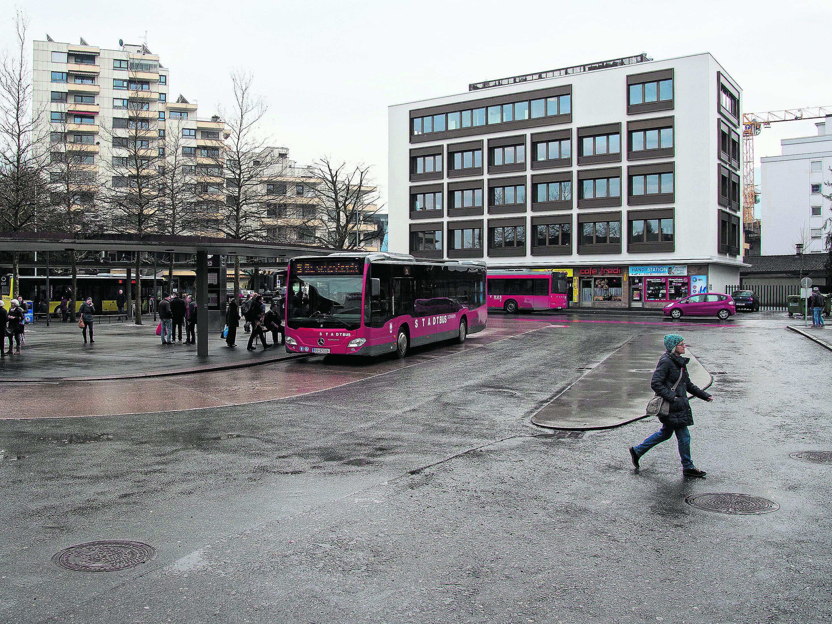 Der Dornbirner Bahnhofplatz ist viel mehr als „nur“ das Entrée zu den Zügen der ÖBB. Als Auch-Busbahnhof ist er der zentrale Verkehrsknotenpunkt der Stadt, frequentiert täglich von Tausenden von Menschen, die hier ankommen, ein- oder umsteigen. Und so ist es ganz im Sinn der örtlichen Stadtplaner, dass der Platz von attraktiven Gebäuden umstellt ist. Angefangen mit dem umgebauten Bahnhof und der architektonischen Attraktivierung des Postgebäudes. Vis-á-vis steht ein feudales – unter Denkmalschutz stehendes – gründerzeitliches Haus, neben dem sachlich reduzierten „Haus Mittelmeer“, dem in Bälde ein Hochhaus zur Seite gestellt werden soll. In Sichtweite des Bahnhofplatzes wächst aber auch gerade die neue Zentrale der BTV in die Höhe, was die hier versammelten Architektursprachen um noch eine Facette erweitern wird. Deren auch qualitative Heterogenität für Dornbirns Stadtplaner Stefan Burtscher der beste Beweis für eine „lebendige, sich ständig verändernde, junge Stadt“ ist.