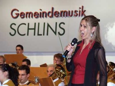 Mit Schenkt ein, schenkt ein und jubelt im Vereine” aus dem zweiten Finale der Fledermaus” wünschte die Soubrette Gabriele Hronek gemeinsam mit der Gemeindemusik Schlins unter Artur Hermann den zahlreichen Besuchern im Wiesenbachsaal Prosit Neu Jahr”. Mit dem Perpetuum Mobile” hatte Hermann eine weitere Strauß-Hommage aufs Programm gesetzt. Daneben servierte die Gemeindemusik Gehörfälliges mit The best of Bryan Adams”, der rhythmisch und harmonisch anspruchsvollen First Suite in Es” von Gustav Holst und Highland Cathedral”.
