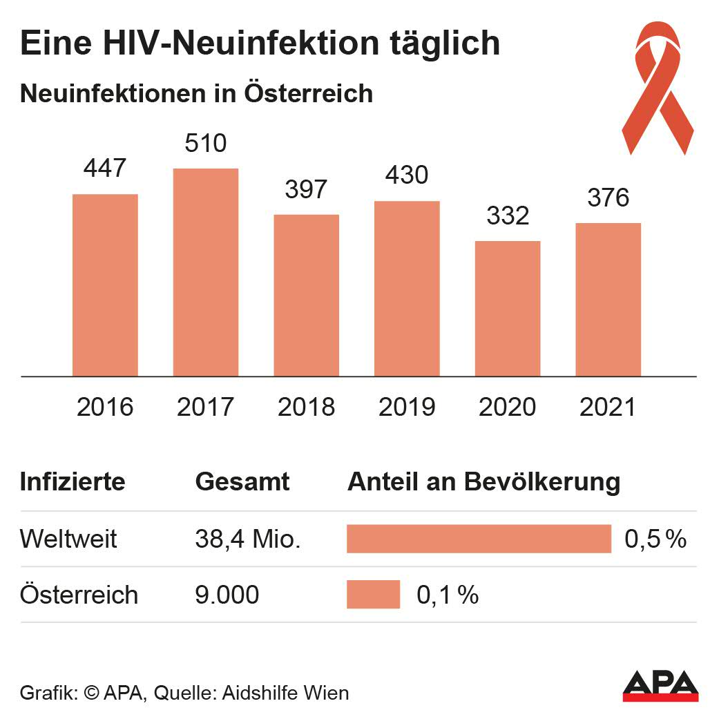 • Durschnittlich eine neue HIV-Diagnose pro Tag in Österreich