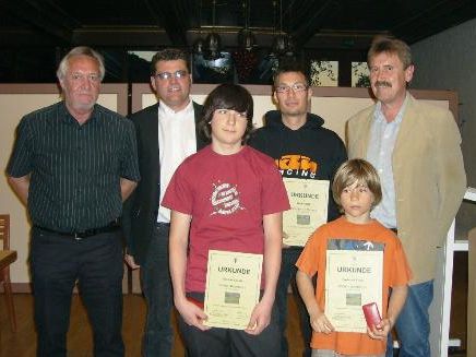 Der BMX-Club Bludenz zählt zu den größten und auch erfolgreichsten Vereinen in dieser Sportart in Österreich. Dies zeigte sich auch bei der diesjährigen Jahreshauptversammlung des Gesamtvereins, bei der gleich vier Sportler mit dem Sportehrenzeichen bzw. der Sportehrennadel der Stadt Bludenz von Sportreferent Arthur Tagwerker, Sektionsobmann Herbert Dür und Alt-Sportstadtrat Dieter Kohler ausgezeichnet wurden. Das Sportehrenzeichen erhielt Markus Rüf für seinen Meistertitel, den er 2007 bei den Österreichischen Meisterschaften in Vösendorf in der Klasse Cruiser 30+ herausfahren konnte. Jürgen Schelling erzielte den Meistertitel ebenfalls in der Klasse Cruiser 30+ bei den Meisterschaften 2008 in Baierdorf. Über die Sportehrennadel durften sich Frederick Ender (Klasse Boys 8) und Thomas Kleiner (Klasse Boys 15/16) freuen, sie erzielten bei den Meisterschaften 2007 in Vösendorf bzw. 2008 in Baierdorf ihre Meistertitel.