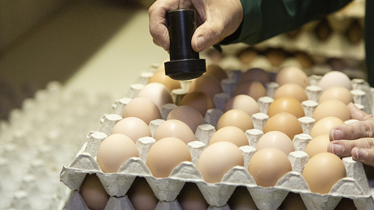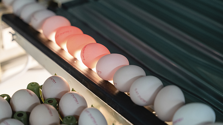 In Eier-Sammelzentren, sogenannten Packstellen, die die angelieferten Eier auf Beschädigung und Verschmutzungen prüfen, nach Größe sortieren und in Blister oder Kartons verpacken, werden ausschließlich bereits auf den Bauernhöfen gestempelte Eier angenommen. So ist sichergestellt, dass jedes Ei genau zum Herkunftsbetrieb zurückverfolgt werden kann, denn: „Die Mühe, den Stempel wieder herunterzukratzen und zu ersetzen, das tut sich keiner an“, weiß Genia Hauer, die als Bereichsleiterin Qualitätsmanagement auch für Eier verantwortlich ist. Woher ein Ei stammt kann dabei nicht nur der AMA-Experte herausfinden, sondern jede Konsumentin und jeder Konsument. Denn in der österreichischen Eierdatenbank kommt man dem Grundnahrungsmittel auf die Spur. Hier lässt sich einfach der auf dem Ei aufgestempelte Erzeugercode eingeben und schon sieht man nicht nur die Haltungsform, sondern auch Name und Anschrift des Legehennenhalters. Bereits seit 2005 müssen alle Eier in der EU mit einem Code gekennzeichnet werden. Größere Betriebe in Österreich haben meist eine Stempelmaschine, kleine Bauern stempeln dagegen von Hand. Die auf den ersten Blick verwirrend wirkenden Zahlen und Buchstaben lassen sich ganz einfach entschlüsseln: Die erste Zahl auf dem Ei gibt die Haltungsform an: 0 bedeutet Bio, 1 ist Freilandhaltung, 2 Bodenhaltung und 3 die Käfighaltung. „Käfighaltung gibt es bei AMA-Gütesiegel-Eiern nicht“, weiß Genia Hauer. „Was derzeit noch ein Kritikpunkt ist, ist die Tatsache, dass der Handel mit Eiern aus Käfighaltung in der EU erlaubt ist“, meint Hauer. Das AT auf dem Ei steht für Österreich, Deutschland wäre DE, Slowenien SL usw. Danach folgt die siebenstellige Betriebszahl, die direkt zum Bauernhof führt.