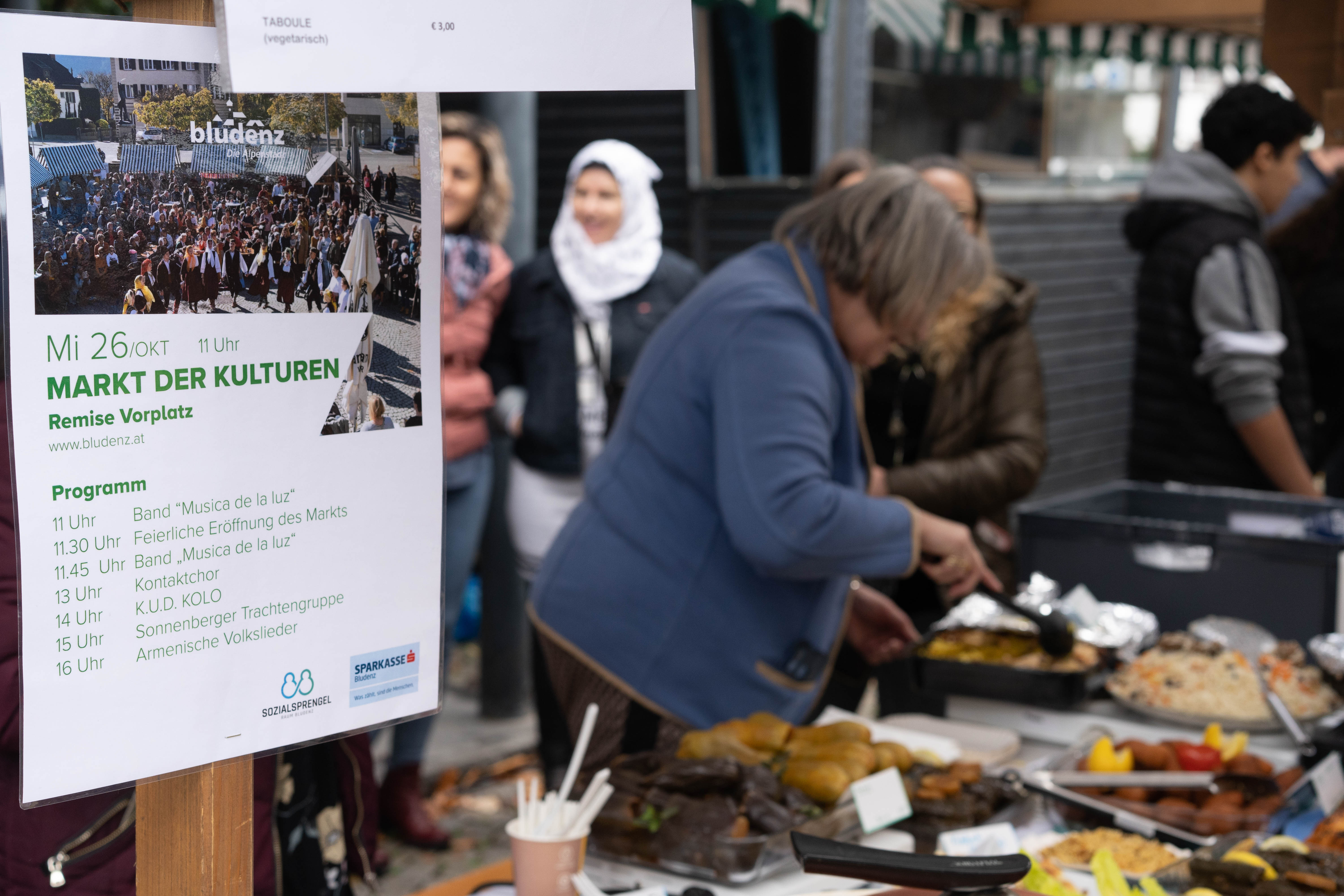Der große Andrang beim diesjährigen Markt der Kulturen sorgte für gute Stimmung auf am Vorplatz der Remise Bludenz. Iranische Gerichte waren neben französischem Wein zu finden und türkische Spezialitäten neben deutschem Bier. Auch handgemachte ukrainische Kunst wurde ausgestellt. Anfängliche Regenschauer wichen am Nachmittag der wärmenden Herbstsonne und unterstrichen die Geselligkeit.