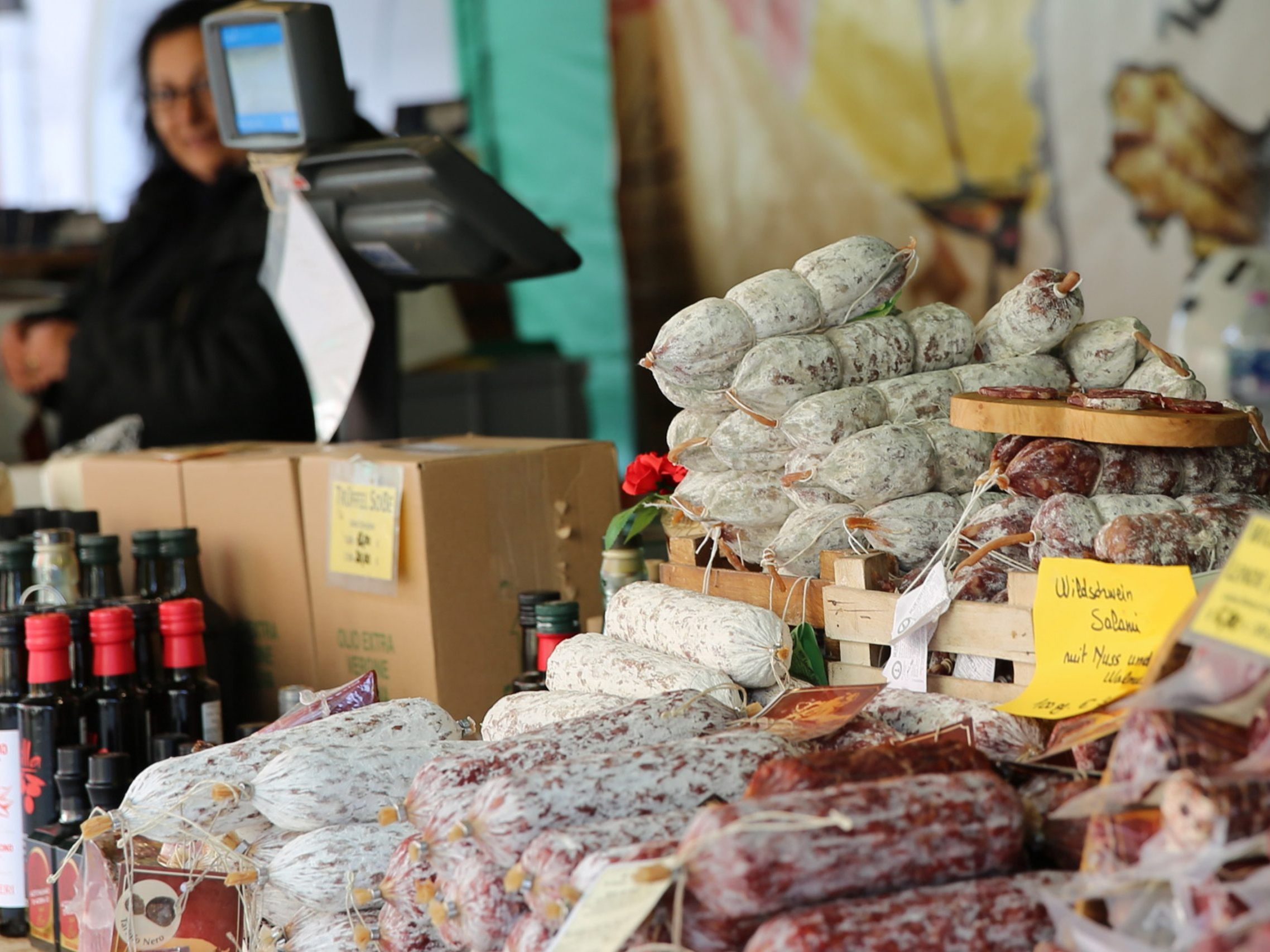 Der Markt führt von Donnerstag bis Sonntag mit hochwertigen Spezialitäten quer durch die kulinarische Welt von Italien. Landestypischer Käse, Salsiccia und Salami, Süßigkeiten, Brot, aromatisches Olivenöl und mehr – all diese Produkte, die wir an Italien so lieben, können vor Ort auch degustiert werden. Die Marktfahrer verwöhnen Sie mit köstlichen italienischen Spezialitäten und die Fülle des Angebotes erinnert uns an die schönsten Stunden im sonnigen Süden. Also auf zum Verkosten, Genießen, Erwerben – und Verweilen.