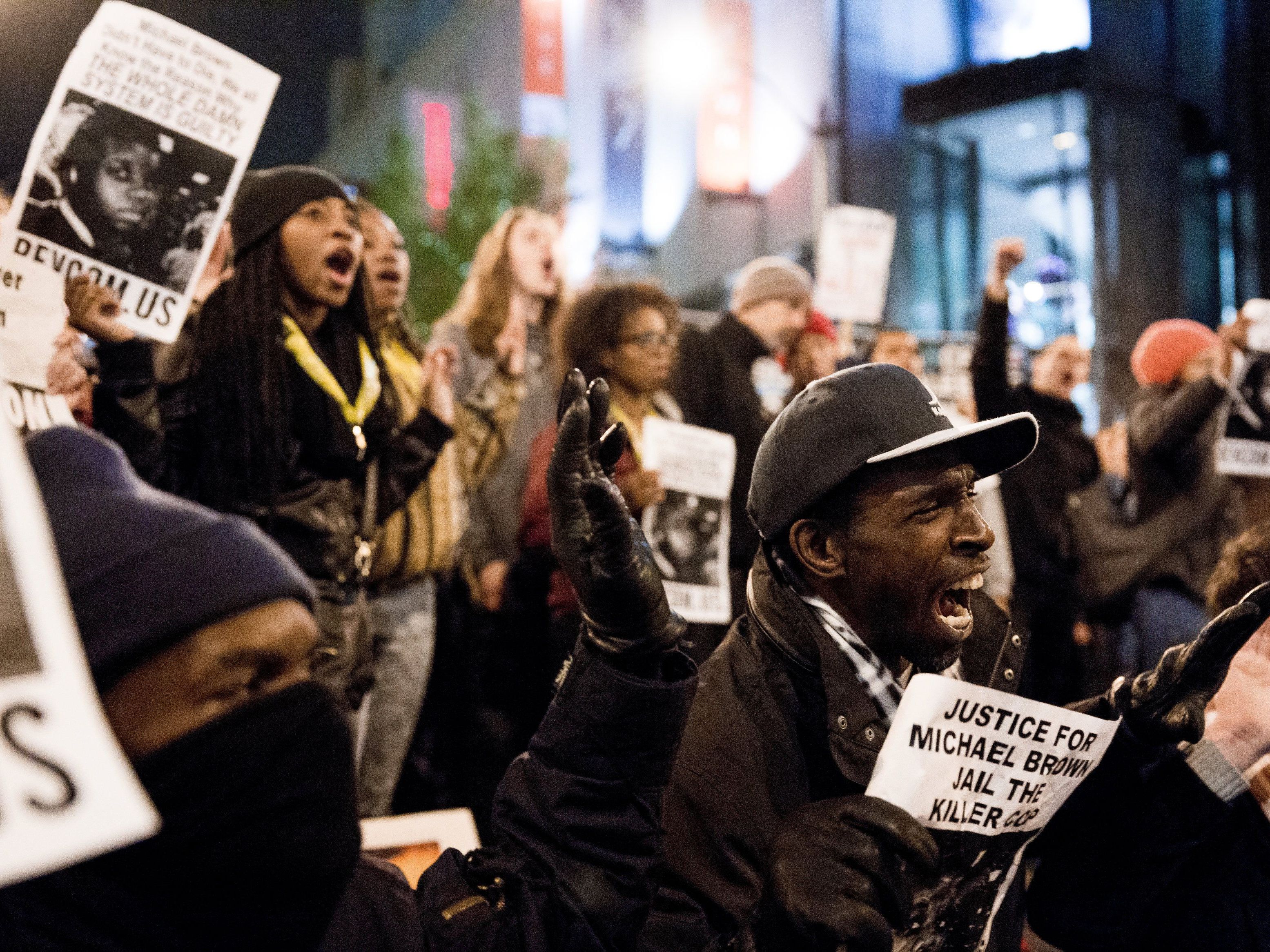 Auslöser war die Entscheidung von Geschworenen, den Polizisten, der die tödlichen Schüsse abgegeben hatte, nicht anzuklagen. In Ferguson skandierten Demonstranten vor einer Polizeiwache “Keine Gerechtigkeit, kein Friede”. Trotz einer erhöhten Präsenz der Nationalgarde ging im Zentrum ein Polizeiauto in Flammen auf.