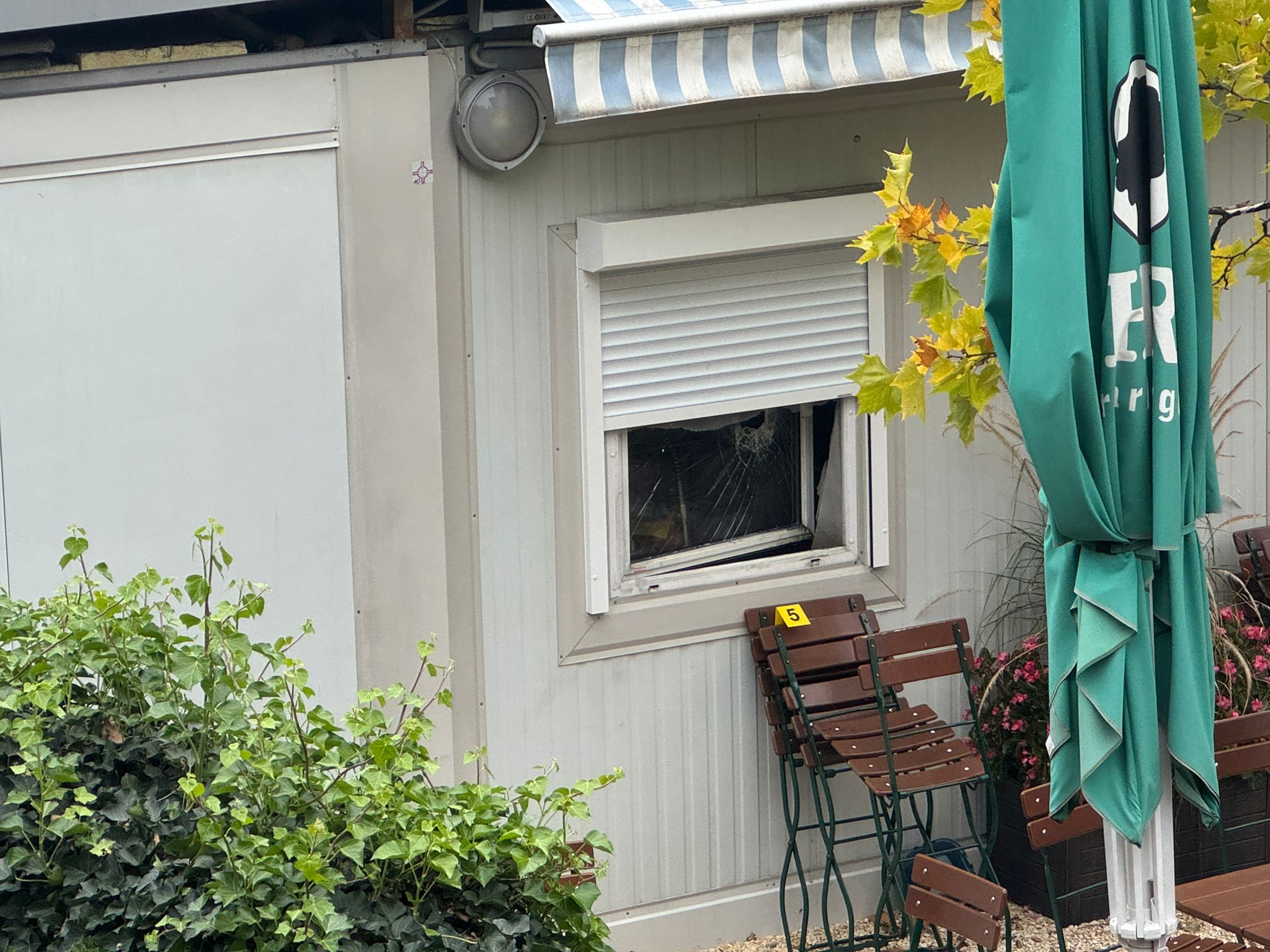 Der oder die Täter verschafften sich wohl mit einem Stein Zugang zum Imbiss. Ein Fenster auf der Rückseite von Toni's Imbiss wurde offensichtlich eingeworfen, wie die Bilder vom Tatort zeigen.