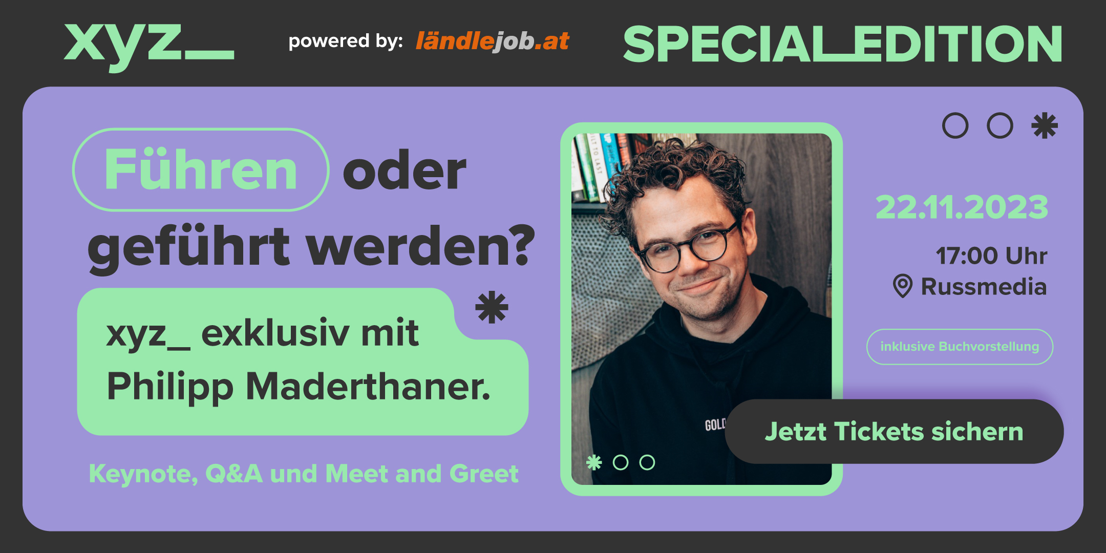 Bei einer Special Edition der xyz_ hast du die Möglichkeit, Philipp Maderthaner live zu erleben. Hol dir bei seiner Keynote wertvollen Input und erfahre alles über sein neues Buch. Dieses Event ist ein Pflichttermin für Führungskräfte und solche, die es noch werden wollen.