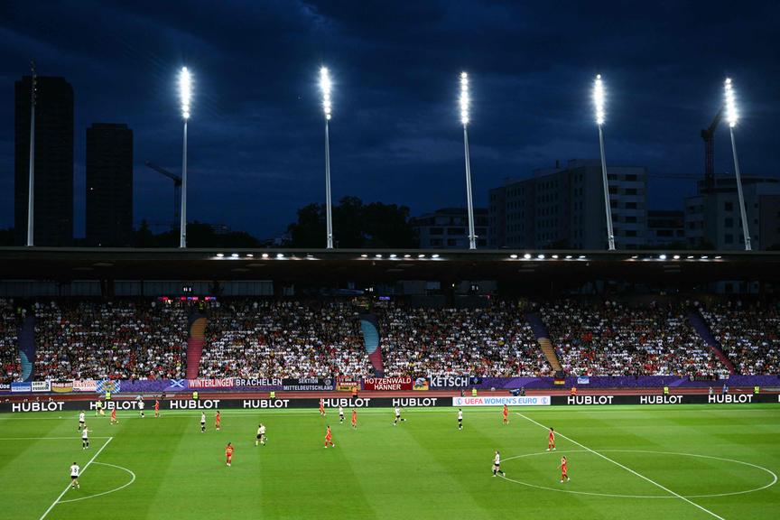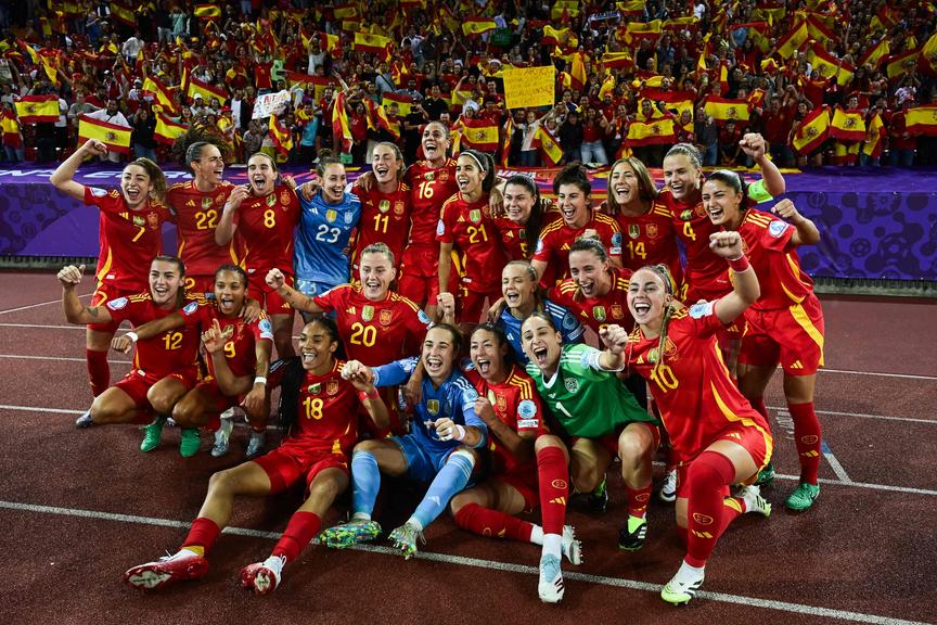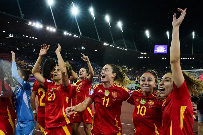 Vor 22.432 Zuschauern im ausverkauften Stadion darunter Bundespräsident Frank-Walter Steinmeier - jubelten die überlegenen Spanierinnen nach einem intensiven Duell. Das Team um Starspielerin Bonmatí kann nun zwei Jahre nach dem WM-Triumph von Australien erstmals Europameister werden.